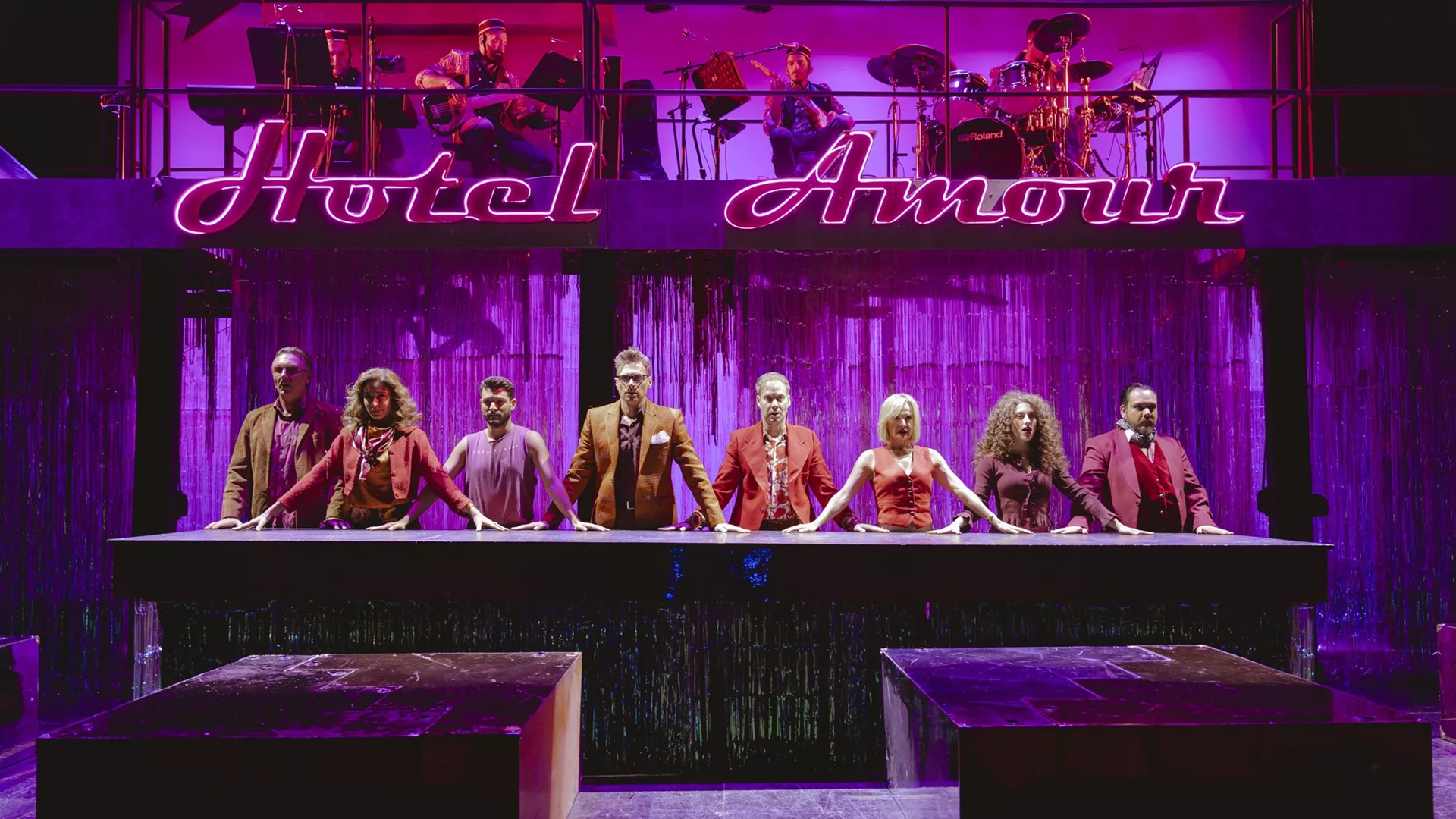 Το "Hotel Amour" άνοιξε τις πόρτες του στο Θέατρο Ακροπόλ και υποδέχεται τους θεατές σε μια νύχτα αλλιώτικη από όλες τις άλλες. Το μιούζικαλ εξελίσσεται σε ένα ξενοδοχείο ημιδιαμονής στην καρδιά της Αθήνας, όπου τέσσερα ετερόκλητα ζευγάρια έρχονται αντιμέτωπα με τις κρυφές επιθυμίες, τις φαντασιώσεις και τις προσδοκίες τους. Με χιούμορ και ευαισθησία, το έργο θέτει το θεμελιώδες ερώτημα: τι είναι το σεξ, ποια βαθιά ανάγκη εκφράζει και με ποιο κόστος;
