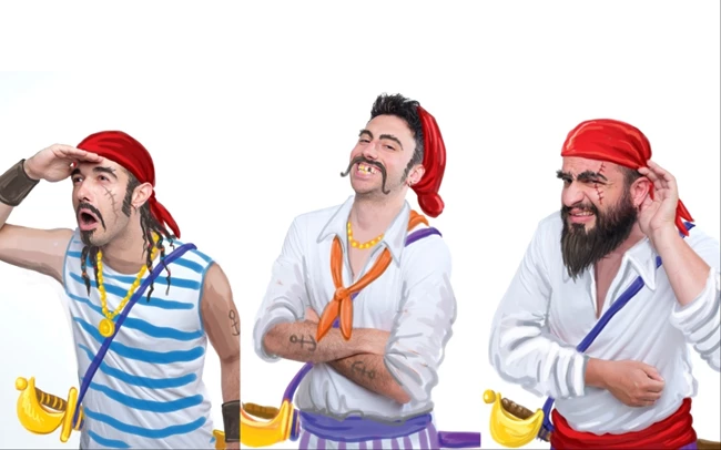 Κεντρικό σημείο της παράστασης είναι η μουσική του Κορνήλιου Σελαμσή, βασισμένη σε ναυτικούς σκοπούς και πειρατικά τραγούδια του 17ου και 18ου αιώνα, σε νέες ενορχηστρώσεις και επεξεργασία. Οι ηθοποιοί ερμηνεύουν τη μουσική και τα τραγούδια (σε στίχους Θωμά Μοσχόπουλου), παίζοντας κιθάρα, μπάντζο, μαντολίνο, φλάουτο, κλαρινέτο, σαξόφωνο, κόντρα μπάσο, κρουστά, βιολί, ακορντεόν και πιάνο. Η κινησιολογία της Σοφίας Πάσχου, τα σκηνικά της Ευαγγελίας Θεριανού και οι φωτισμοί της Σοφίας Αλεξιάδου δίνουν μια παιχνιδιάρικη και αθώα νότα στον θίασο, εισάγοντας μικρούς και μεγάλους θεατές στον κόσμο του φανταστικού. Χαρακτηριστικά είναι και τα πολύχρωμα, πειρατικά κοστούμια, τα οποία έχουν επιμεληθεί οι Κλαιρ Μπρέισγουελ και Όλγα Εβσέεβα, ενώ μέρος τους έχουν παραχωρηθεί από το Μέγαρο Μουσικής Αθηνών και την Εθνική Λυρική Σκηνή. Η παράσταση απευθύνεται σε όλη την οικογένεια και είναι κατάλληλη για παιδιά από 5 ετών.