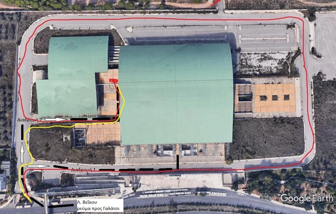 *Σημείωση: Το Christmas Theater βρίσκεται στη Λεωφόρο Βεΐκου 139 στο Γαλάτσι (εντός της Ολυμπιακής Εγκατάστασης Γαλατσίου) και είναι προσβάσιμο από τη λεωφορειακή γραμμή 608. Οι υποψήφιοι θα χρησιμοποιήσουν την Είσοδο Καλλιτεχνών. Η κόκκινη διαδρομή αφορά όσους κινούνται με μεταφορικό μέσο. Η κίτρινη διαδρομή αφορά όσους κινούνται πεζοί.