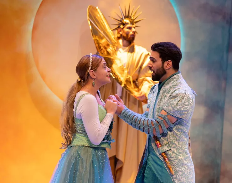 Η αγαπημένη όπερα γίνεται μουσικό παραμύθι επενδεδυμένο με τις υπέροχες μελωδίες του Βόλφγκανγκ Αμαντέους Μότσαρτ. Αφηγείται τη μαγευτική ιστορία της όμορφης Παμίνας, κόρης του βασιλιά της ημέρας και της βασίλισσας της νύχτας, που βρίσκει στο πρόσωπο του πρίγκιπα Παμίνο το σύμβολο της αρετής και της αγάπης. Ο βασιλιάς της μέρας και η βασίλισσα της νύχτας, κάποτε αγαπήθηκαν και αποφάσισαν να ενωθούν. Όμως η αγάπη τους δεν κράτησε πολύ. Εκείνη ήταν φτιαγμένη από ψέματα και κακία, εκείνος από αλήθεια και καλοσύνη. Εκείνη ήθελε να εξουσιάζει με το σκοτάδι, εκείνος ήθελε να βασιλεύει με το φως. Μετά από εννέα μήνες η σκοτεινή βασίλισσα έφερε στον κόσμο ένα όμορφο κοριτσάκι, την Παμίνα, στην οποία ποτέ δεν είπε ποιος είναι ο πατέρας της. Όταν εκείνος το έμαθε την έκλεψε κρυφά. Η βασίλισσα βρήκε τότε τον πρίγκιπα Ταμίνο, που μαζί με τον σκανταλιάρη Παπαγκένο, θα τη βοηθήσουν να την πάρει πίσω.