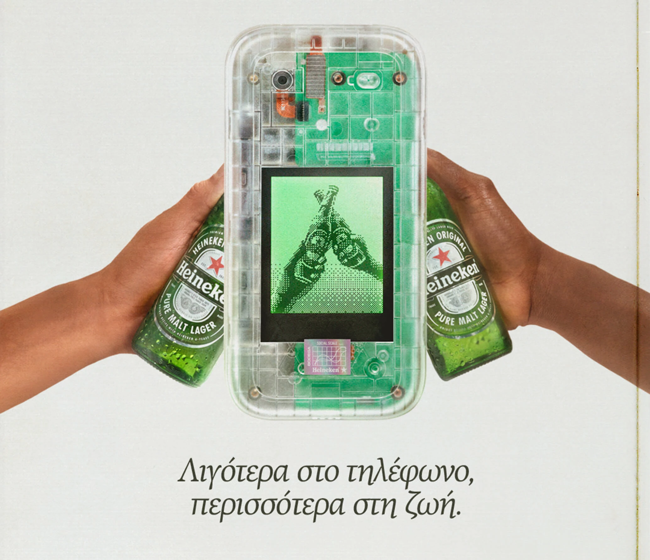 Το περιορισμένης έκδοσης flip phone έχει διαφανές περίβλημα, holographic αυτοκόλλητα και εμβληματικό σχεδιασμό Y2K: δηλαδή ότι χρειάζεσαι για να είναι fun χωρίς όμως να σου στερεί τη δική σου διασκέδαση και τη σύσφιξη των κοινωνικών σου σχέσεων. Είναι κάτι παραπάνω από ένα gadget, δηλαδή, ή ένα αξεσουάρ: είναι μια σαφής υπενθύμιση πως πρέπει να επενδύσουμε «Λιγότερα στο τηλέφωνο, περισσότερα στη ζωή». Κάπου εδώ τελειώνουν οι δικαιολογίες και τα διαφορετικά «γκλιν» των apps: μπορείς πλέον να αφιερωθείς ουσιαστικά στη μουσική ή τη συζήτηση χωρίς μια συνεχή διακοπή από ειδοποιήσεις για πράγματα για τα οποία ποτέ άλλοτε δεν θα σκεφτόσουν να ειδοποιηθείς. Πρώτο βήμα, να μάθεις πως μπορείς να αποκτήσεις το δικό σου boring phone! Κι αφού πια δεν θα σε νοιάζει να δεις και να σε δουν, μπορεί η έξοδός σου παρέα με μια Heineken να περάσει ακόμα και το 10 στην κλίμακα της απόλαυσης: γιατί θα είναι για σένα και για τους ανθρώπους σου, εκεί που θα θέλετε να είστε πραγματικά, εκεί που θα σας αρκεί να είστε μαζί.