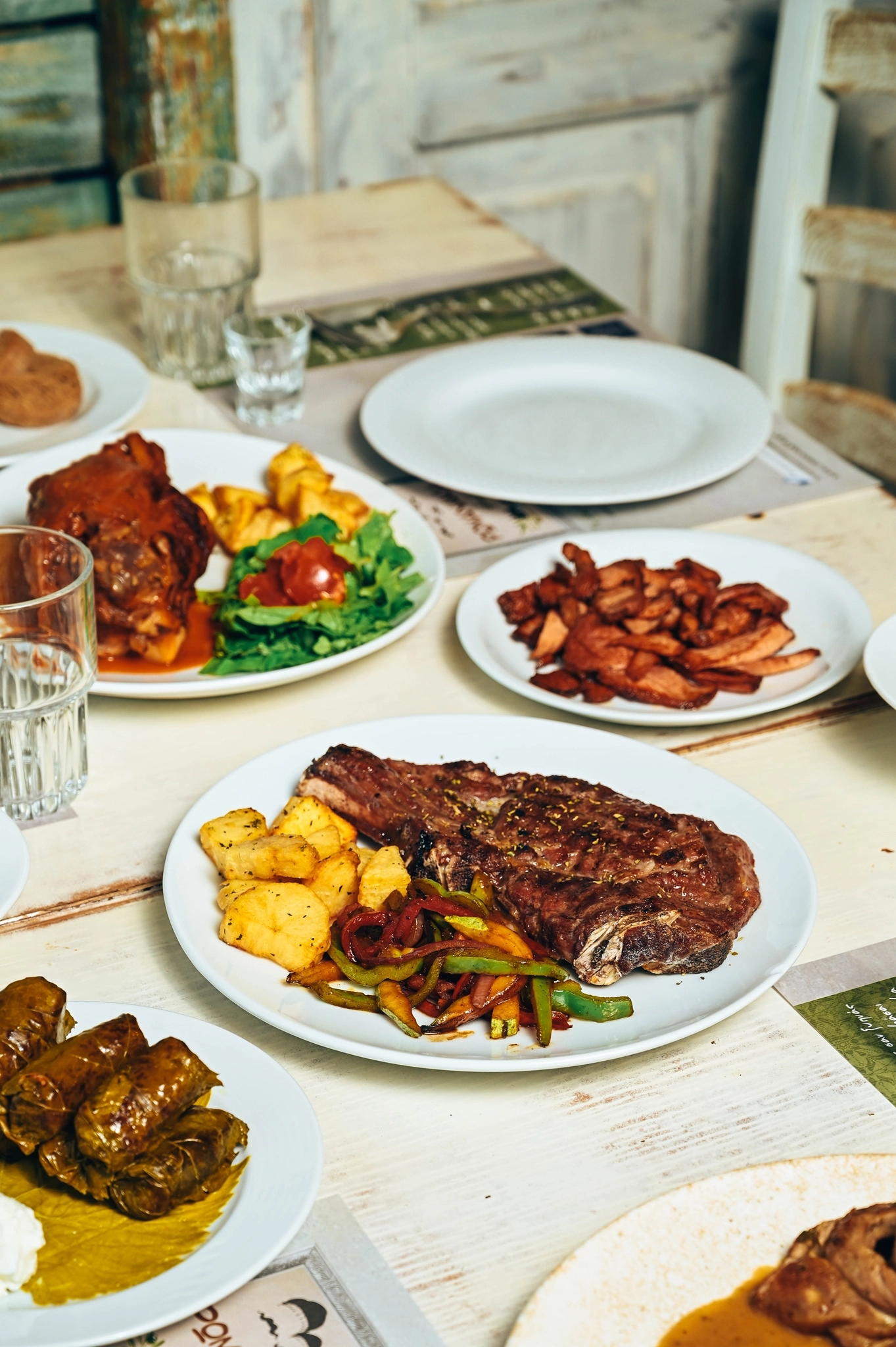 Στα κυρίως, η απόλαυση απογειώνεται με κρεατονοστιμιές όπως το οφτό "αντικριστό” αρνί, το γαμοπίλαφο με το ζυγούρι, ο κοκκινιστός πετεινός και το μαγειρευτό ριφάκι (κατσικάκι) με τα μελωμένα κρητικά του χόρτα. Ιδιαίτερη πρόταση στο πεδίο αυτό είναι τα μοσχαρίσια μάγουλα που μαγειρεύονται σιγά σιγά με σάλτσα πετιμέζι. Τέλος, άχαστα είναι το χοιρινό κότσι αλλά και τα ξακουστά σκιουφιχτά, τα μικρά στριφτά μακαρόνια που εδώ φτιάχνονται στο χέρι και σερβίρονται με φιλετάκια χοιρινού ή κοτόπουλου και ανθότυρο.