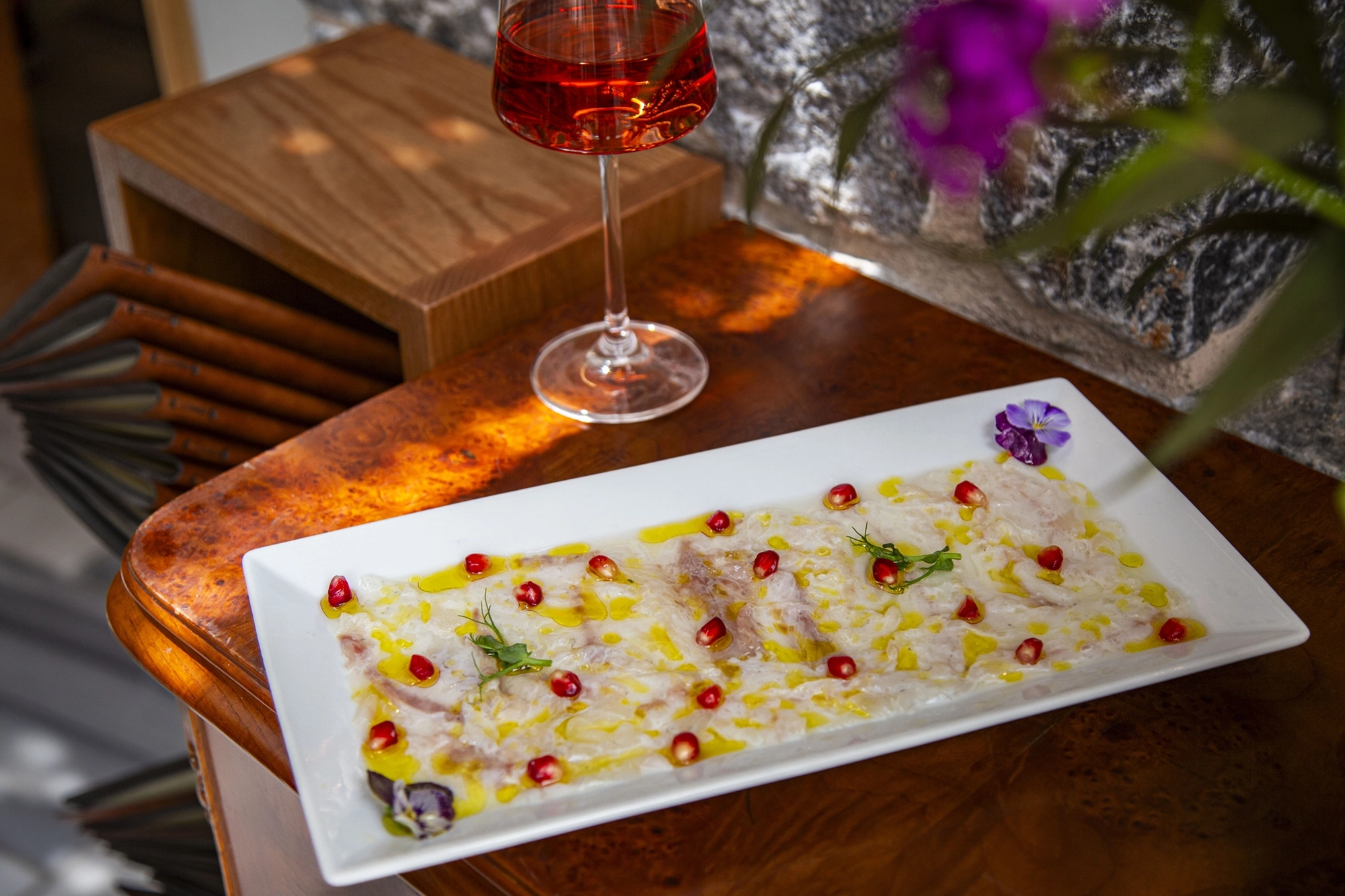Η ποικιλία στις σαλάτες και τα ορεκτικά δίνει τον τόνο εξ αρχής: η δροσερή "Θιν’ αλός" με εσπεριδοειδή και παρμεζάνα, η μεσογειακή με ξινομυζήθρα και παξιμάδια εσπεριδοειδή, αλλά και κλασικά πιάτα όπως η φάβα, τα μύδια αχνιστά και οι κολοκυθοκεφτέδες με σως γιαουρτιού, προετοιμάζουν γευστικά το έδαφος. Η γευστική εμπειρία συμπληρώνεται με μια επιμελημένη wine list, που περιλαμβάνει ελληνικές και διεθνείς ετικέτες, διαλεγμένες να αναδεικνύουν τα αρώματα της θάλασσας.