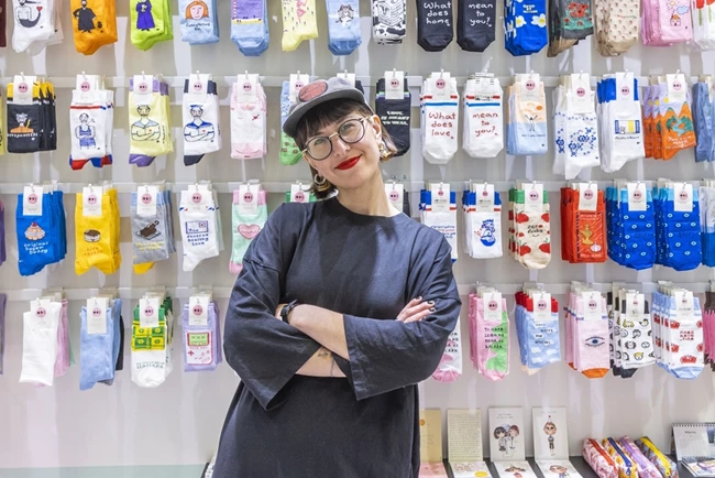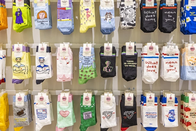 Πέραν της μεγάλης ποικιλίας από τις unisex κάλτσες, που πωλούνται και "ταξιδεύουν" σε πολλά μέρη του κόσμου μέσα από επιλεγμένα μαγαζιά, στο κατάστημα μπορείς να βρεις και άλλα fashion προϊόντα, πάντα στο ίδιο παιχνιδιάρικο ύφος και χρώματα. Μακρυμάνικες αθλητικές μπλούζες και t-shirts, τσάντες, hairclips και σκουλαρίκια, σκουφάκια και scrunchies, ακόμα και μία σειρά από sex toys και δονητές. "Όπως και οι κάλτσες, μέσω των σχεδίων τους κάνουν κάποιο σχόλιο, έτσι και οι δονητές. Ας μη κρυβόμαστε άλλο για τον οργασμό μας ή την περίοδό μας. Φτάνει με την παράλογη, εξουθενωτική ντροπή για τα σώματά μας. Η σεξουαλική υγεία είναι το δικαίωμά μας στην αυτοδιάθεση και την χαρά".