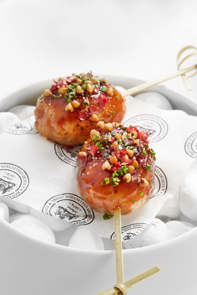 Τα εκλεπτυσμένα πιάτα του μενού χαρακτηρίζονται από υψηλή αισθητική και ασυναγώνιστη γεύση αναδεικνύοντας τη μοντέρνα εκδοχή των ντόπιων παραδοσιακών υλικών. Τα canapés καλωσορίσματος αποτελούνται από μικρά πολύχρωμα αριστουργήματα που προκαλούν έκρηξη γεύσεων στο στόμα και μας βάζουν στο κλίμα για την εμπειρία που ακολουθεί.