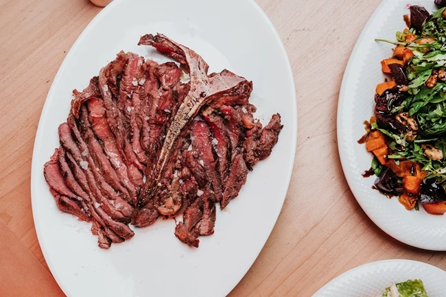 Στο ανανεωμένο μενού υπάρχουν επιπροσθέτως και κοπές, ξηράς ωρίμανσης 3-4 εβδομάδων, με βασιλιά το porterhouse σε ιδανική αναλογία φιλέτου και κόντρα φιλέτου ενώ το flat iron επιστρέφει με τον γνωστό umami χαρακτήρα του.
