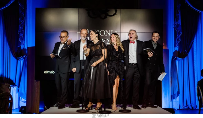 Από τις 24 Ιανουαρίου 1994, την πρώτη απονομή των Χρυσών Σκούφων του "αθηνοράματος", μέχρι τις 11 Σεπτεμβρίου 2023, όπου ο κορυφαίος γαστρονομικός θεσμός γιόρτασε τα 30 του χρόνια, πολλά έχουν συμβεί, μας υπενθύμισαν αμέσως μετά η Εβελίνα Παπούλια και η Ναταλία Δραγούμη. Έχουν αξιολογηθεί περισσότερα από 24 χιλιάδες εστιατόρια, για παράδειγμα, με 17 γευσιγνώστες να διανύουν περισσότερα από 356.000 χιλιόμετρα για να δοκιμάσουν 264.691 πιάτα και να απονείμουν 579 Χρυσούς Σκούφους, καταναλώνοντας στην πορεία πάνω από… 125 εκατομμύρια θερμίδες! Τα νούμερα αυτά μάθαμε όταν η Παπούλια και η Δραγούμη προκάλεσαν τους Στέλιο Μάινα και Άκη Σακελλαρίου σε μια μονομαχία για τα trivia της διοργάνωσης, σε μια από τις πιο αξιομνημόνευτες στιγμές της βραδιάς, προτού δώσουν τη σκυτάλη στην κ. Σοφία Δήμτσα, διευθύντρια Εταιρικών Σχέσεων και Επικοινωνίας της ΔΕΗ, να απονείμει τους Χρυσούς Σκούφους στα καλύτερα εστιατόρια των Κυκλάδων: τα μυκονιάτικα "Baos" και "Matsuhisa Mykonos" τα "Lauda" "Lycabettus" και "Petra" της Σαντορίνης, αλλά και το "Grandma’s" της Ίου.