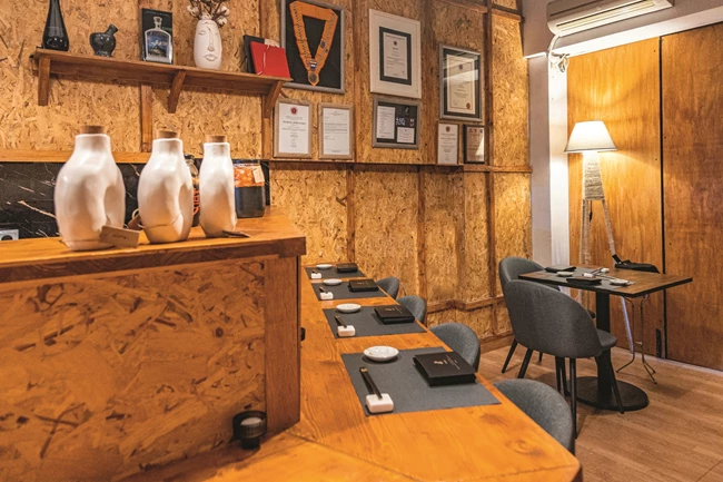 Θα μπορούσε η κουζίνα της χώρας του Ανατέλλοντος Ηλίου να συναντήσει τις ελληνικές γεύσεις και μάλιστα στην καρδιά της Αθήνας; Την απάντηση δίνει το "Rakkan" στα Ιλίσια, στην περιοχή ακριβώς πίσω από το "Hilton", συνδυάζοντας τις δύο εκ διαμέτρου αντίθετες γευστικές κουλτούρες με τον σεφ Βαγγέλη Παπανίκα στο συντονισμό ισορροπιών και εντάσεων. Στο μενού θα βρείτε μια γκάμα προτάσεων, όπως ντολμαδάκια tempura με μαγιάτικο τυλιγμένο σε φύλλο miso, καλοφτιαγμένα signature rolls, αλλά και ενδιαφέροντα κυρίως, όπως το λαβράκι Χιλής με πουρέ σελινόριζας και σάλτσα από βούτυρο και yuzu. Για τον γλυκό επίλογο η τάρτα lemon yuzu ή ένα σοκολατένιο προφιτερόλ namelaka είναι ό,τι πρέπει, ενώ στη συνέχεια θα μεταφερθείτε στο μπαρ για να κλείσει η βραδιά με κοκτέιλ και ωραίες μουσικές ζωντανά ή από guest DJs.