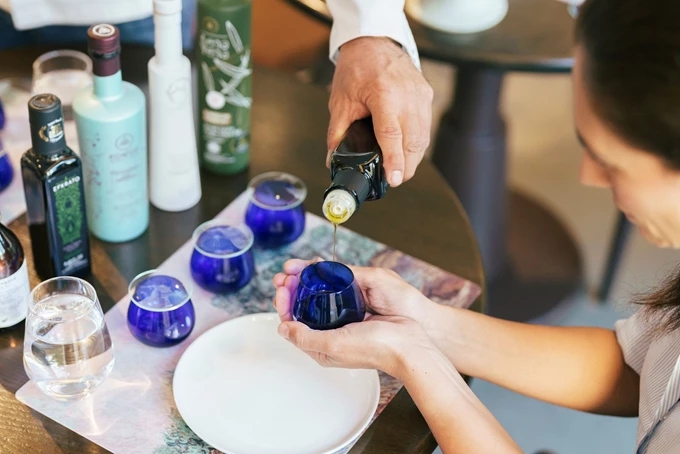 Θα ανακαλύψεις τους τρόπους που μπορεί να χρησιμοποιηθεί το ελαιόλαδο – κάποιους από τους οποίους μπορεί να μην τους είχες καν φανταστεί. Θα δοκιμάσεις βραβευμένες ποικιλίες ελαιόλαδου από όλα τα μέρη της Ελλάδας συνοδεύοντάς το με φρέσκο ζυμωτό ψωμί από το εστιατόριο "Άκρα", ψημένο στον ξυλόφουρνο, αλλά και φρεσκοψημένα καρβελάκια χωρίς γλουτένη από τον φούρνο "Asterisque" και θα γνωρίσεις διαφορετικούς Έλληνες ελαιοπαραγωγούς.
