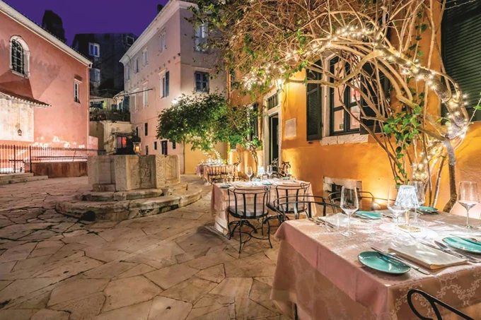 Στα καλοστρωμένα τραπέζια, το πολύ καλά συντονισμένο και ενημερωμένο σέρβις παραδίδει τα πιάτα-εμπνεύσεις του σεφ Σπύρου Αγιού, που μαζί με τον σεφ-ιδιοκτήτη Γιάννη Βλάχο παρουσιάζουν μία fine comfort κουζίνα με φινέτσα και χάρη, η οποία συνδέει παραδοσιακές κερκυραϊκές σπεσιαλιτέ με σύγχρονες τάσεις και ιδέες. Στα plus, μία εντυπωσιακή οινική λίστα με περισσότερες από 1000 ετικέτες του ελληνικού και διεθνή αμπελώνα. Τον χειμώνα, η δράση μεταφέρεται στην Αναγνωστική Εταιρία Κερκύρας, με το "Βενετσιάνικο Πηγάδι" να παρουσιάζει εκεί την εστιατορική του υπόσταση.