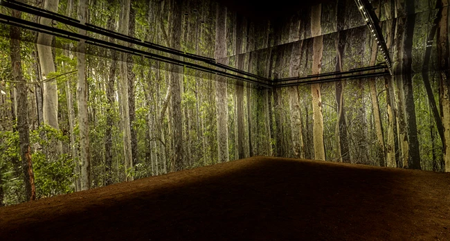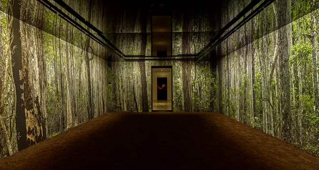 Κάπως τρομακτική. Ενώ έχω εισαγάγει στον χώρο της εγκατάστασης στοιχεία ζωής, όπως είναι ο ήχος των πουλιών, το εύφορο χώμα, ο χρόνος (μέσα από την αέναη κυκλική αλλαγή του φωτός από νύχτα σε μέρα), η εικόνα του δάσους είναι μια στιγμή παγωμένη στον χρόνο. Είναι, εντέλει, η φωτογραφική αναπαράσταση ενός δάσους που δεν υπάρχει πια. Στην αρχή, μπαίνοντας στον χώρο αισθάνεται κανείς μια αίσθηση του ωραίου και του ζωντανού, όμως σε δεύτερη παρατήρηση/ανάγνωση, καθώς αντιλαμβάνεται την απέναντι αίθουσα μέσα από το άνοιγμα και βλέπει και ακούει τον ήχο της φωτιάς, δημιουργείται μια μετατόπιση των αισθήσεων και των συναισθημάτων.