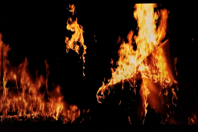 Τα δύο αντιθετικά στοιχεία που συναντάει κανείς στο εμβυθιστικό περιβάλλον της Δανάης Στράτου είναι η εγκατάσταση όπου αναπαρίσταται ένα υγιές δάσος και μια βιντεοσκοπημένη εικόνα ενός φύλλου χαρτιού που φλέγεται ασταμάτητα με πολύ αργό ρυθμό. Η φωτιά, οι συμβολισμοί και οι καταστροφικές συνέπειές της παρακινούν τον επισκέπτη να εκκινήσει τη περιβαλλοντική του συνείδηση.