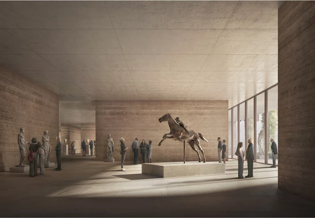 Η πρόκληση στον σχεδιασμό του έργου, τόνισε ο Chipperfield, ήταν πώς μπορούν να δημιουργήσουν έναν επιπλέον χώρο που δε θα επισκιάζει το υπάρχον κτίριο, ούτε θα ανταγωνίζεται την υφιστάμενη αρχιτεκτονική. Θεώρησαν ότι μια υπόγεια σύνδεση δε θα ήταν τόσο αποτελεσματική, επομένως αποφάσισαν να "χαμηλώσουν" την είσοδο και να την επεκτείνουν μέχρι την οδό Πατησίων, δημιουργώντας δύο επίπεδα υποσκαφών εκθεσιακών χώρων και ενώνοντας τη μεγάλη σκάλα του μουσείου με τις νέες υποδομές, που θα φτάνουν περίπου τα 20.000 τ.μ. Στην επέκταση θα περιλαμβάνονται εκδοτήριο εισιτηρίων, αμφιθέατρο εκδηλώσεων, νέοι χώροι για μόνιμες και περιοδικές εκθέσεις, εστιατόριο και πωλητήριο, το οποίο θα είναι προσβάσιμο από δύο διαφορετικές εισόδους, έτσι ώστε να μπορεί κανείς να το επισκεφθεί χωρίς να μπει μέσα στο μουσείο. Το αρχιτεκτονικό ύφος που θα ακολουθήσει η ομάδα είναι σε γενικές γραμμές λιτό και στοχεύει τη δημιουργία μιας δραματικής ατμόσφαιρας μέσα στους χώρους και ενός κτιριακού κελύφους που θα προστατεύει τη συλλογή του μουσείου. Τα γραφεία τόνισαν ότι πηγή έμπνευσης για το σχέδιο που οραματίστηκαν ήταν το αρχιτεκτονικό έργο των Λάνγκε και Τσίλλερ.