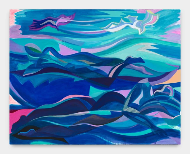 Ένα νέο σύνολο έργων ζωγραφικής, σχέδια μελάνης μεγάλου φορμά, αλλά και προσθήκες κειμένου και βινυλίου, παρουσιάζει η καλλιτέχνιδα Mira Dancy. Σε όλο το φάσμα της δουλειάς της, η Dancy χρησιμοποιεί τεχνικές διαστρωμάτωσης για να δημιουργήσει ρήξεις στον χώρο. Τυπολογικά αρμονικά αλλά πρακτικά αδύνατα, τα οπτικά παράδοξά της υποδηλώνουν πνευματικές και φιλοσοφικές έννοιες της υποκειμενικότητας, της αιωνιότητας και της σχέσης μας με τη φύση. Τα συγκλίνοντα επίπεδα των πινάκων της απεικονίζουν σώματα σε μεταιχμιακές καταστάσεις, όχι μέσω της απαλής διάλυσης της θολότητας, αλλά μέσω τολμηρών, σκληρών περιγραμμάτων που παραπέμπουν σε μια αναδιάταξη των φυσικών και ψυχολογικών ιεραρχιών. Οι ιδιότητες της γραμμής, του χρώματος και του σχήματος υποτάσσονται σε θεωρητικές δομές, καθώς οι πίνακες προτείνουν έναν κόσμο ώριμο να ξαναπλαστεί με τη φαντασία, να διαμορφωθεί από τη σκέψη και την αίσθηση. Το έργο της Dancy ενεργοποιείται μέσα από ένα παιχνίδι υπερθέσεων και αντιθέσεων. Τα έργα του ‘See-Thru Palm’ συνεχίζουν συμβολικά αυτή την εξερεύνηση. Οι πίνακες και τα σχέδια μελάνης περιλαμβάνουν μια παιγνιώδη ανταλλαγή μοτίβων – ανάμεσα στο φύλλο του φοίνικα (palm) και την παλάμη του χεριού (palm) – και τα δύο γλαφυρά αποσωματοποιημένα μέσα στην περιδίνιση του εικονογραφικού κόσμου της Dancy. Ερμηνείες του να βλέπεις μέσα από (see thru) νερό, να παρακολουθείς ένα πουλί να μπαίνει σε ένα λουλούδι ή να στοχάζεσαι πάνω στις γραμμές της παλάμης σου, πυροδοτούν τις πολυεπίπεδες συνθέσεις των πινάκων, αλλά και τις πιο διακριτικές αρχιτεκτονικές παρεμβάσεις στην γκαλερί. Η διαμόρφωση μιας οπτικής εμπειρίας μέσω του συνδυασμού χρώματος, γλώσσας και χωρικών χειρονομιών υπαινίσσεται ένα τηλεσκοπικό συνεχές ανάμεσα στην κατοίκηση ενός σώματος, ενός ποιήματος ή ενός δωματίου. Σε όλο το εύρος της έκθεσης υπάρχει ανάμικτη η έννοια του γυαλιού ως δοχείου και του γυαλιού ως φακού, δημιουργώντας μια συνομιλία ανάμεσα στην ύλη και στο κενό. Μια μορφή βινυλίου σε στάση κατάδυσης, τοποθετημένη στους γυάλινους τοίχους που βλέπουν στον δρόμο, ρίχνει περιστασιακά τη σκιά της στο εσωτερικό της γκαλερί. Η άρθρωση του χώρου μέσω πολλαπλών αλλεπάλληλων μορφών απηχεί το διατηρητέο που είναι εγγενές στην τοποθεσία της γκαλερί Δύο Χωριά: στεγασμένη σε μια αστική βίλα του τέταρτου αιώνα, η γκαλερί έχει διατηρήσει ένα υπόγειο επίπεδο με την αρχική αρχιτεκτονική του κάτω από γυαλί, ώστε να είναι ορατό στο κοινό από ψηλά. Σε διάλογο με το έργο της Dancy, ο ίδιος ο χώρος παρασύρεται μέσα στον συμπαντικό αναστοχασμό της πάνω στην αλλαγή, τη μονιμότητα και την πληθώρα των ενεργειών που βρίσκονται ακριβώς κάτω από την επιφάνεια του ορατού.