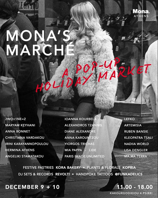 Ημερομηνίες και ώρες λειτουργίας: 16-17/12, 11 π.μ. – 6 μ.μ. (Mona, Κακουργοδικείου 4, Ψυρρή)