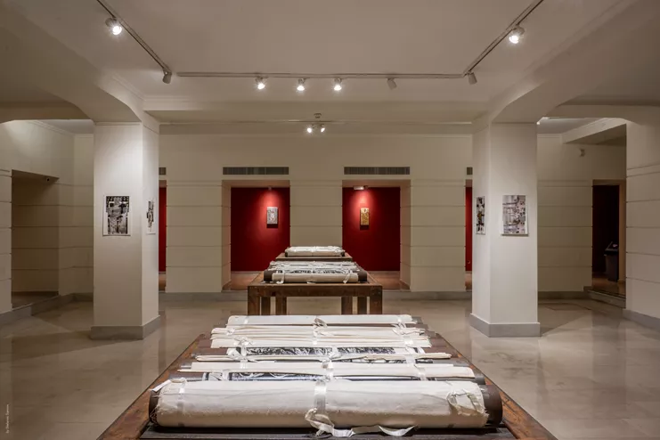 Ο Alfredo Romano, ανατρέχοντας στην πολύχρονη δημιουργική του δραστηριότητα, ξεκινά μια μακρά περιπλάνηση στις δυστυχίες και τα ύψη της ανθρώπινης εμπειρίας. Ο καλλιτέχνης βρίσκει τον εαυτό του να αναστοχάζεται ορισμένα στάδια του δικού του ιδανικού ταξιδιού: από την ιστορική έρευνα της δεκαετίας του 1990 έως τις πιο πρόσφατες παραγωγές, από το 2023. Ένα πρώτο κοινό θέμα στα έργα που εκτίθενται είναι η εστίαση στον τρόπο με τον οποίο γίνεται αντιληπτό το πέρασμα του χρόνου και η καθίζησή του. Τα έργα της δεκαετίας του 1990 συνδέονται στην πραγματικότητα με τον προβληματισμό σχετικά με τους συλλογικούς τρόπους κατασκευής της μνήμης, από τη γραφή έως την αφήγηση ιστοριών, μέσω της ανάλυσης διαφορετικών μεσογειακών πολιτισμών. Και αυτό που αναδύεται είναι η διάσταση της χορικότητας, σχεδόν απρόσωπης, που συνοδεύει τη διαμόρφωση και την επανάληψη της παράδοσης. Αλλά και τα πιο πρόσφατα έργα του ασχολούνται με την αντίληψη του χρόνου, αν και σ’ αυτά αυτή η διάσταση της απροσωπικότητας, προνυμφική στα προηγούμενα έργα του, ριζοσπαστικοποιείται περισσότερο: δεν πρόκειται πλέον για ανθρωπολογική σύλληψη του τρόπου με τον οποίο ο άνθρωπος σχετίζεται με την ιστορία. Αντιθέτως, ο Romano εκφράζει τη ροή της σε μια ύλη χωρίς μάρτυρες, στην οποία τα πράγματα απλώς συσσωρεύονται.