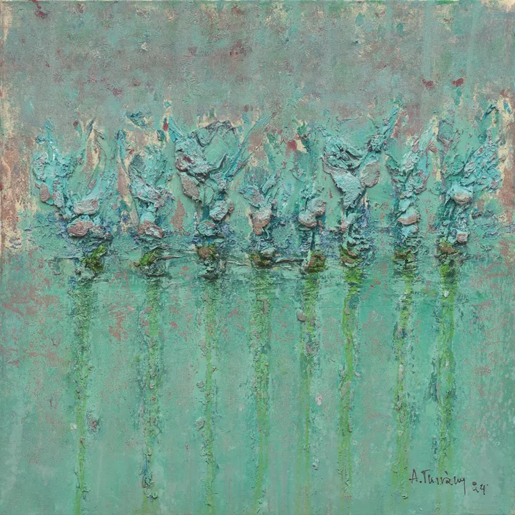 Άλλο ένα ταξίδι στον εξπρεσιονιστικό, ανάγλυφο κόσμο της Αναστασίας Γκινάκη. Η ζωγράφος μάς καλεί να βυθιστούμε, ή και να πετάξουμε, μαζί της πάνω από τα σύμβολά της, να μοιραστούμε τις υφές τους, να τα δούμε και να τα χαϊδέψουμε. Άλλοτε μοιάζουν να κινούνται μέσα στο νερό, ενώ άλλες φορές αιωρούνται στον αέρα. Οι ζωγραφικές φόρμες της, πότε πιο αφηρημένες, πότε πιο γήινες και σαφείς, μα πάντα ιδιαίτερες και ξεχωριστές.