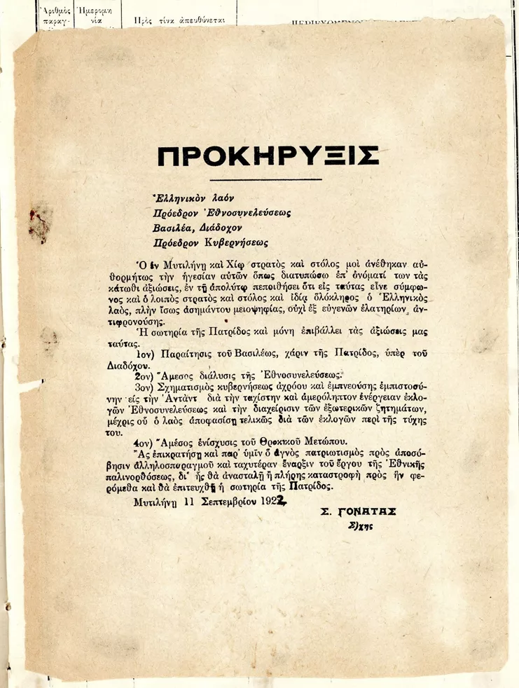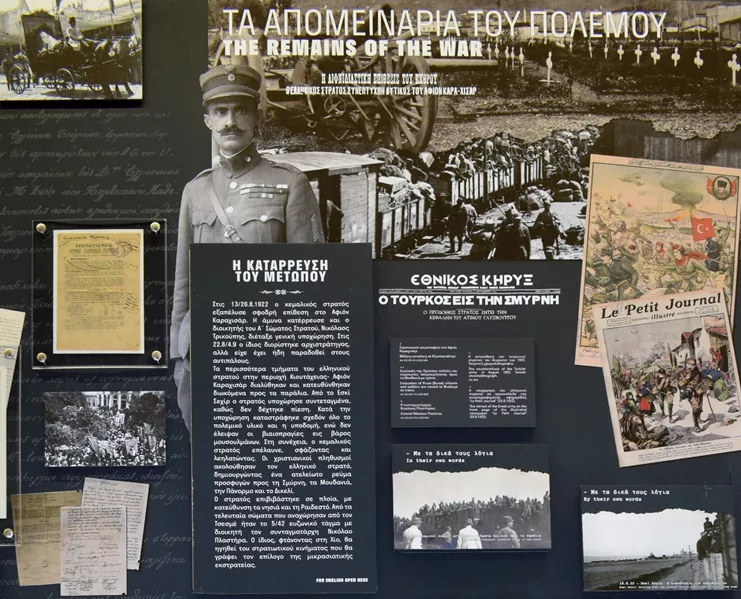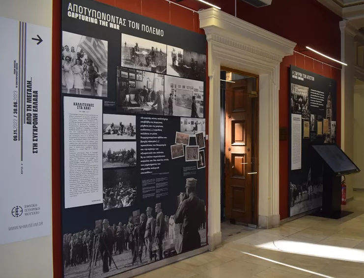 Η έκθεση παρακολουθεί την πορεία από τη Μεγάλη Ιδέα της εθνικής ολοκλήρωσης στη συνοριακή και πληθυσμιακή διαμόρφωση του σημερινού ελληνικού κράτους. Το πρώτο μέρος της αναφέρεται στα γεγονότα της μικρασιατικής εκστρατείας που οδήγησαν στην παγίωση των ελληνικών συνόρων και το δεύτερο, που θα ακολουθήσει το 2023, αφορά στις μετακινήσεις και τις προσφυγικές ροές που διαμόρφωσαν την πληθυσμιακή ταυτότητα της σύγχρονης Ελλάδας. Στο κύριο μέρος περιλαμβάνονται φωτογραφικά τεκμήρια, έγγραφα και αντικείμενα από τις συλλογές του ΕΙΜ, πλαισιωμένα από μαρτυρίες, αποσπάσματα ημερολογίων, δημοσιεύματα του Τύπου και βίντεο αφηγούνται την ελληνική παρουσία στη Μικρά Ασία και τα γεγονότα της εκστρατείας, μέχρι την υποχώρηση του ελληνικού στρατού και την καταστροφή της Σμύρνης. Η τελευταία ενότητα αναπτύσσεται στην αίθουσα συνεδριάσεων της Παλαιάς Βουλής, όπου διαδραματίστηκε η δίκη όσων θεωρήθηκαν υπεύθυνοι για την εθνική τραγωδία. Εκεί, εκτίθενται τα πρωτότυπα σχέδια του Περικλή Βυζάντιου από τη Δίκη των Έξι, μαζί με τεκμήρια από τα γεγονότα που ακολούθησαν την Καταστροφή.
