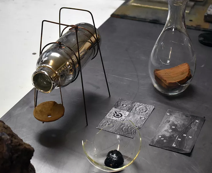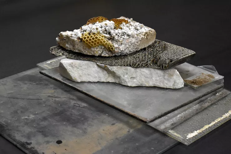 Μέσα από μία σειρά έργων που λειτουργούν ως μάρτυρες ή υβριδικά απομεινάρια, η Αθηνά Κουμπαρούλη συγκροτεί μια αφήγηση με ανοιχτά ερωτήματα γύρω από το τοπίο και την απώλεια του, σε μια περίοδο κλιματικής κρίσης. Τα έργα της έκθεσης αποτυπώνουν χειρονομίες που δεν επιδιώκουν τη διατήρηση αυτού που έχει απομείνει, αλλά στρέφονται προς την εκσκαφή αυτού που έχει εξαφανιστεί. Η χρονική σύμπτωση με την έξαρση των πυρκαγιών την περίοδο 2021–2024 οδήγησε την ερευνητική διαδικασία προς μια νέα κατεύθυνση, με τα κατεστραμμένα τοπία να λειτουργούν ως case studies. Υιοθετώντας την αρχαιολογική μεθοδολογία, αλλά μετασχηματίζοντάς την σε καλλιτεχνικό εργαλείο, η καλλιτέχνιδα παρουσιάζει μια νέα μορφή ανασκαφής που περιλαμβάνει θραύσματα των τοπίων που ερευνά. Αναζητώντας την παρουσία μέσα από την απουσία, η έκθεση χαρτογραφεί ένα τοπίο φαντασιακό αλλά και απόλυτα πραγματικό.