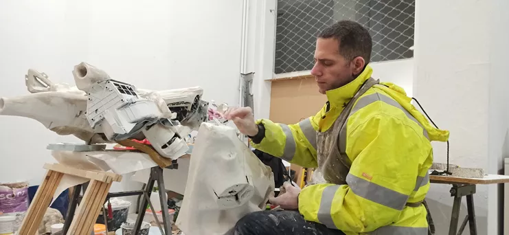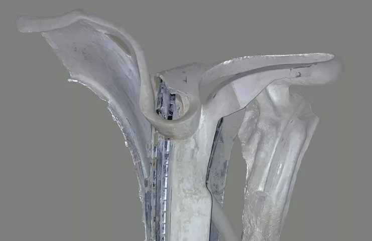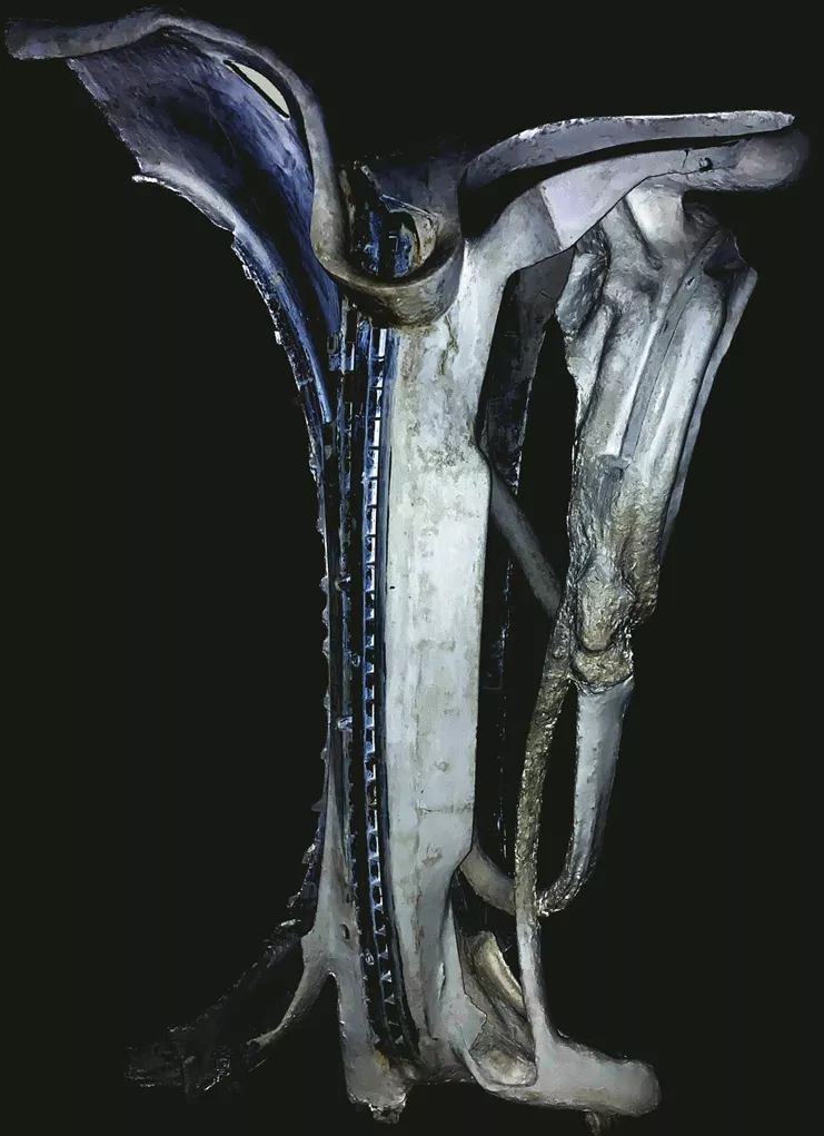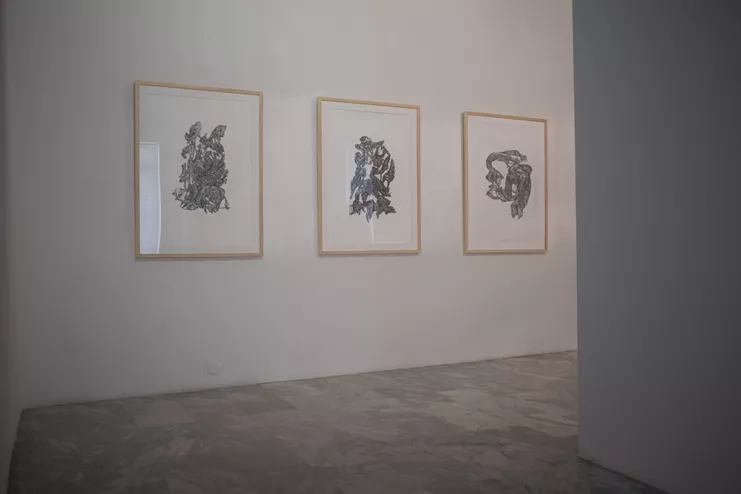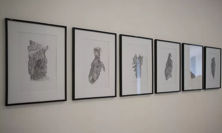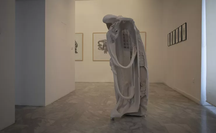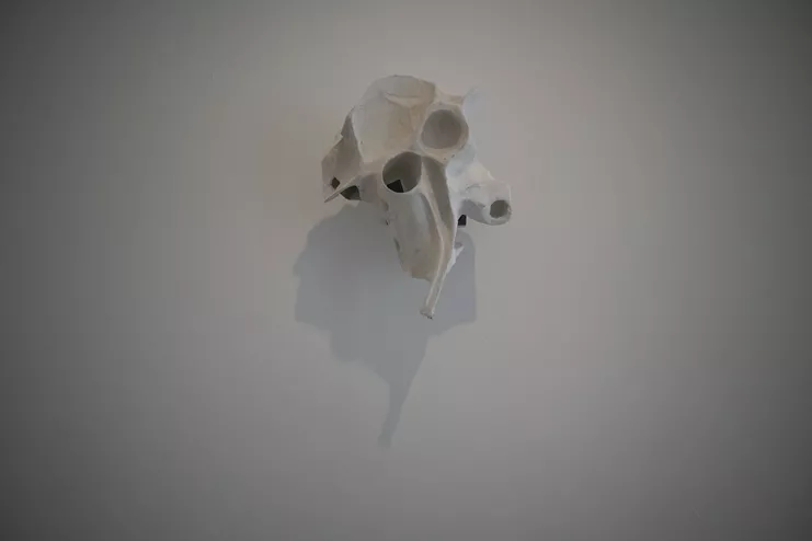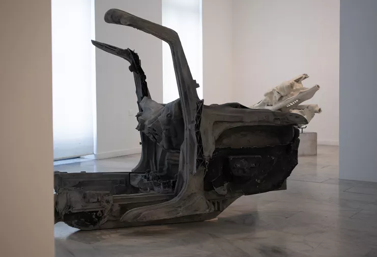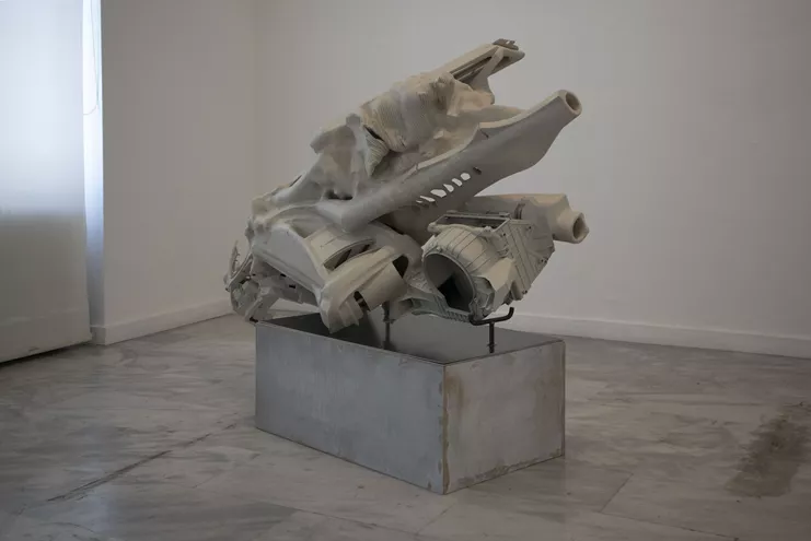 Ο Αύγουστος Βεϊνόγλου μας καλεί να προβληματιστούμε γύρω από τα παραμορφωμένα λείψανα-απομεινάρια που θα αποκαλυφθούν στο μέλλον. Γλυπτά και σχέδια προβάλλουν τη διαδικασία της πετροποίησης μέσω της χρήσης πορσελάνης, χαρτοπολτού και διαφορετικών πλαστικών εξαρτημάτων από αυτοκίνητα και άλλα μηχανήματα. Τα έργα εσκεμμένα παρουσιάζονται ως λείψανα, καθώς ο καλλιτέχνης, μέσα από την έρευνά του γύρω από την ιδέα της μεταμόρφωσης των φυσικών μορφών από άλλα υλικά, θέλει να μπερδέψει τον θεατή, θολώνοντας τα όρια τεχνητού και φυσικού, παρόντος και παρελθόντος, έμψυχου και άψυχου.