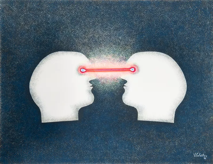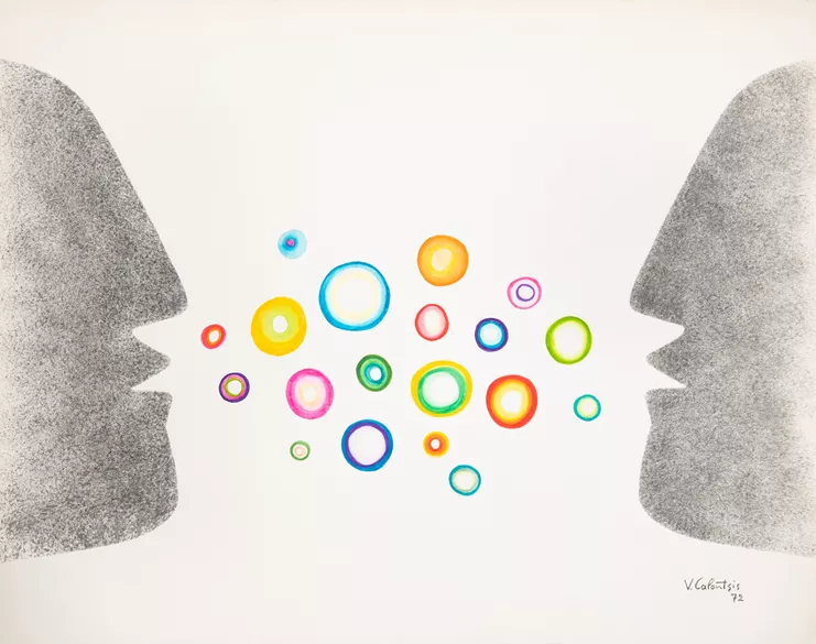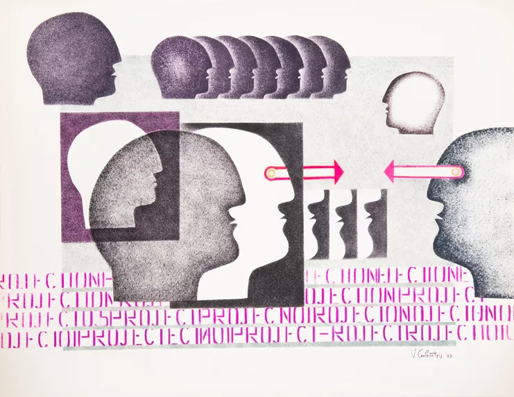 Η a.antonopoulou.art επαναφέρει την πολυδιάστατη τέχνη του Βαλέριου Καλούτση στον χώρο της, μετά το περσινό "Reconstruction". Τώρα, σχέδια με τέμπερα, δουλεμένα με την τεχνική του στένσιλ από τη διετία 1972-1973, προσεγγίζουν το πρόβλημα της επικοινωνίας. Η αμεσότητα της σύγχρονης γραφιστικής αλλά και η μαζική αναπαραγωγή των εικόνων οδηγούν σε μια εμφανή έλλειψη επικοινωνίας, την οποία παρατηρούμε να διευρύνεται μέσα σε ένα περιβάλλον ραγδαίας τεχνολογικής εξέλιξης που ουσιαστικά παρεμποδίζει τη διαπροσωπική επικοινωνία.