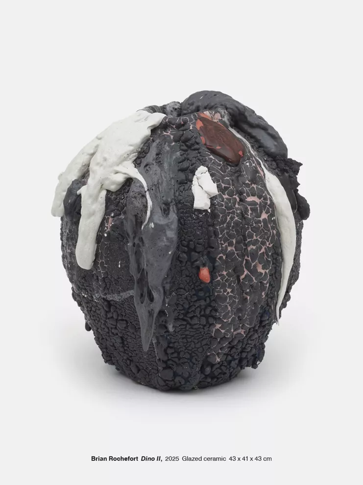 Ο Brian Rochefort ασχολείται με την κατασκευή εφυαλωμένων κεραμικών γλυπτών. Μέσα από απρόβλεπτες φόρμες, τραχιές υφές και χαοτικές επιφάνειες, οι συνθέσεις του ισορροπούν ανάμεσα στην αταξία και την αρμονία. Τα κεραμικά του είναι το αποτέλεσμα ενός επαναλαμβανόμενου κύκλου δημιουργίας, καύσης και καταστροφής, που οδηγεί σε οργανικές παραμορφώσεις, βραχώδεις υαλώσεις και εκρηκτικές κηλίδες. Στα γλυπτά του Rochefort, οι άγριες και ακανόνιστες επιφάνειες εναλλάσσονται με λείες γυαλιστερές σταγόνες αντλώντας από τον αφηρημένο εξπρεσιονισμό και τη μη αναπαραστατική Τέχνη. Εμπνευσμένα από τα ταξίδια του καλλιτέχνη σε παρθένες και απομακρυσμένες τοποθεσίες όπου η φύση κυριαρχεί, τα έργα του υπενθυμίζουν την δύναμη και ταυτόχρονα την ανάγκη προστασίας του φυσικού περιβάλλοντος.