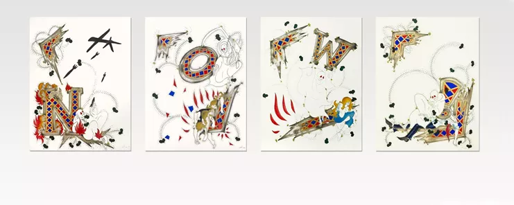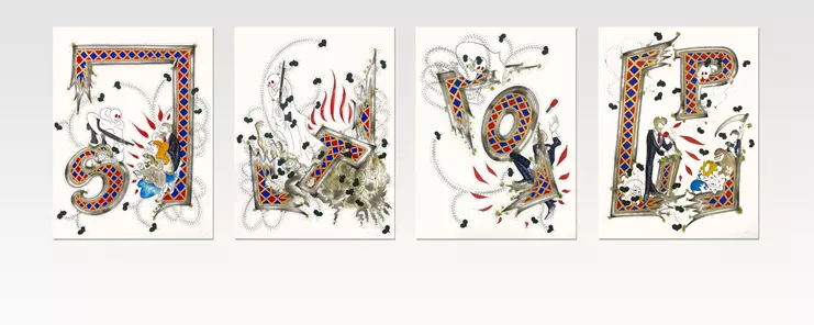 Τα σχέδια της Glauert χρησιμοποιούν παλιές τεχνικές και συμβολισμούς για να περιηγηθούν στον σημερινό κόσμο με τους υπόρρητους φόβους και τις κρυφές του πραγματικότητες. Εμπνευσμένη από την εικονογράφηση των μεσαιωνικών βιβλίων, η σειρά κάνει ένα σουρεαλιστικό προς τα πίσω κατά αρκετούς αιώνες προκειμένου να δει πιο καθαρά το σήμερα. Η έκθεση μοιάζει με κραυγή απελπισίας όπως αυτές που συνήθως συναντά κανείς στα μέσα κοινωνικής δικτύωσης, αλλά υιοθετεί μια μεσαιωνική προσέγγιση στις σύγχρονες συγκρούσεις. Τα γράμματα που συνθέτουν το σύνθημα μάς θυμίζουν εικονογράφηση βιβλίων και παραπέμπουν σε μια μακρά ιστορία βίας. Πρόκειται για μια έκκληση ανθρωπιάς που αποφεύγει προσεκτικά να λάβει τη μια ή την άλλη θέση ενώ ξαναμαγεύει απροσδόκητα τη σύγχρονη κοινωνία μας.
