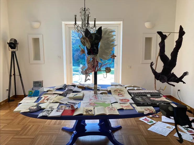 O Georges Bataille, o Charles Bukowski, ο Gustave Flaubert, o Honoré de Balzac, o Μαρκήσιος de Sade, o Samuel Beckett, η Simone de Beauvoir, ο Δημήτρης Δημητριάδης, ο Θωμάς Κοροβίνης, είναι μερικοί μόνο από τους συγγραφείς που συναντιούνται σε κάθε γωνιά του σπιτιού της Demi Kaia. Όμως η αγάπη της καλλιτέχνιδας για τα βιβλία δεν πειορίζεται στην ανάγνωση. Οι λέξεις την εμπνέουν να δημιουργεί εικόνες στις σελίδες των βιβλίων, τα οποία μεταμορφώνει σε ένα μοναδικό έργο. Πάνω από εξήντα βιβλία από την προσωπική της συλλογή παρουσιάζονται στην έκθεση και προσπαθούν να επικοινωνήσουν λέξεις, εικόνες, σκέψεις και συναισθήματα που αφορούν το πάθος, τη σεξουαλικότητα, τη γυναίκα, την αγάπη για τα ζώα και τη μοναξιά. Συνδυαστικά παρουσιάζεται μια σειρά ζωγραφικών έργων και γλυπτών, καθώς και έργα από τα ξυσμένα χρωματιστά μολύβια που η Kaia χρησιμοποίησε για να μεταμορφώσει τα βιβλία της. Σημειώνεται ότι τα έργα απευθύνονται σε ενήλικο κοινό.