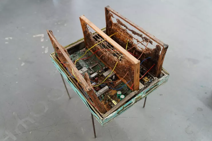 Η έκθεση παρουσιάζει ένα περιβάλλον assemblage που αποτελείται από τριάντα διακριτές μονάδες γλυπτών και δύο βίντεο. Συναθροίζοντας και συναρμολογώντας ετερόκλητα στοιχεία ηλεκτρονικών συσκευών, ευρεθέντων αντικείμενων και οργανικών δομών σε τρισδιάστατες κατασκευές, η Ταμπασούλη συγκροτεί ένα πεδίο σχέσεων, όπου το νόημα αναδύεται μέσα από την αλληλεξάρτηση βιολογικών, τεχνολογικών και μη ανθρώπινων μορφών. Η καλλιτέχνιδα εξετάζει την εντεινόμενη συνεξάρτηση της ανθρώπινης εξέλιξης με την τεχνολογία ως συνθήκη που διαμορφώνει, αλλά και απειλεί, την ίδια την ύπαρξη. Το έργο συγκροτεί ένα υποθετικό οικοσύστημα, ενταγμένο σε ένα μετα-ανθρωποκεντρικό τεχνολογικό περιβάλλον, όπου βιολογικές και τεχνολογικές διεργασίες συνδιαμορφώνουν τις συνθήκες της επιβίωσης.