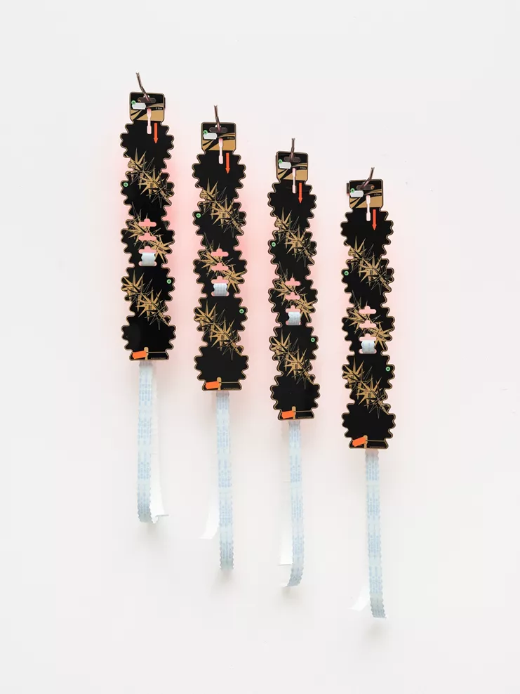 Τι συμβαίνει όταν όσα προσπερνάμε απαιτούν να τα δούμε ξανά; Η Ελένη Παπάζογλου δίνει χώρο και χρόνο σε όσα συνήθως μένουν στη σκιά του στούντιο: πρωτότυπα που δεν ολοκληρώθηκαν, δοκιμές που απέτυχαν, πολύτιμα αποκόμματα, σημειώσεις προς τον εαυτό, προπαρασκευαστικές κινήσεις. Επιλέγοντας να δουλέψει αποκλειστικά με ό,τι έχει συσσωρευτεί τριγύρω της, η καλλιτέχνιδα ανυψώνει το περιθωριακό σε ένα είδος ενεργού λεξιλογίου, όπου το δευτερεύον γίνεται όχι μόνο σχετικό αλλά και γόνιμο. Σκαλίζοντας ένα προσωπικό αρχείο από συσκευασίες, παιχνίδια, αντικείμενα και έντυπο υλικό, η Παπάζογλου συναντά ξανά τα απομεινάρια της σαν να τα βλέπει για πρώτη φορά. Με το να τα επαναξιολογεί, να τα αναμορφώνει και να τα επανεφευρίσκει. Τα έργα που προκύπτουν απλώνονται σε πανό, μακέτες, κολάζ, επιγραφές και εργαλεία, λειτουργώντας σαν μικρές κεραίες συντονισμένες στις κρυφές συχνότητες της καθημερινότητας.