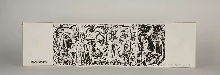 Η Ελληνοαμερικανική Ένωση παρουσιάζει αναδρομική έκθεση του μεγάλου Έλληνα ζωγράφου, Γιάννη Ψυχοπαίδη, αποκλειστικά με "έργα τέχνης-βιβλία" (artist’s books) που φιλοτέχνησε στη διάρκεια της καριέρας του. Ο Γιάννης Ψυχοπαίδης είναι από τους πρώτους Έλληνες καλλιτέχνες που παρουσίασαν στην Ελλάδα, τη Γερμανία, το Βέλγιο και την Ιταλία artist’s books. Παράλληλα με την τεράστια εικαστική του διαδρομή και την εικονογράφηση πλήθους λογοτεχνικών και ποιητικών έργων που κυκλοφορούν σε ειδικές εκδόσεις περιορισμένου αριθμού αντιτύπων, ο Γιάννης Ψυχοπαίδης εμπνεύστηκε και από τη δομή των leporello. Τα leporello προσφέρονται για μια εκτεταμένη αφηγηματική διήγηση, για να αναπτύξει εικονογραφικά αγαπημένα του θέματα. Σ’ αυτές τις επιφάνειες ενσωματώνει με τις εικαστικές του επεμβάσεις συλλογισμούς, απόψεις, αμφισβητήσεις και άλλους συνειρμούς της κριτικής του σκέψης πάνω σε κοινωνικά και πολιτικά θέματα. Επίσης φιλοτεχνεί και ένα μεγάλο αριθμό πολυμορφικών έργων-βιβλίων, που δεν έχουν ποτέ παρουσιαστεί στο κοινό.