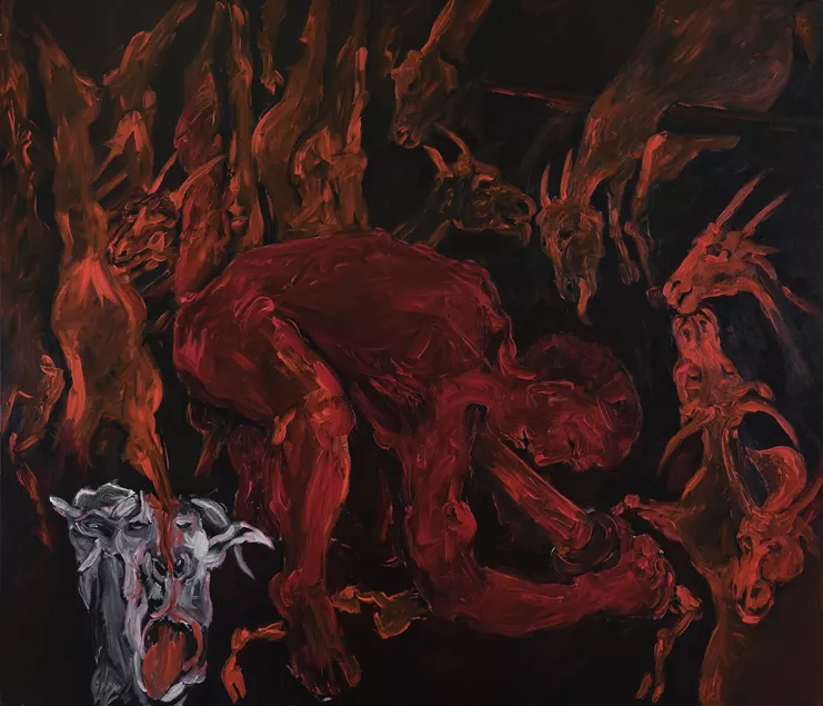 Πρωταγωνιστής ο Οιδίποδας, μια μορφή αρχέτυπο της ανθρώπινης τραγωδίας, την οποία ο καλλιτέχνης επανεγγράφει μέσα από μια εσωτερική, προσωπική μα και πανανθρώπινη οπτική. Στη ζωγραφική του Τζερμιά, το φως δεν σώζει αλλά καίει, το αίμα, η στάχτη και το χρυσό μετατρέπονται σε σύμβολα γνώσης και ύβρεως. Ο θεατής δεν παρακολουθεί την τραγωδία ως αναπαράσταση αλλά τη βιώνει ως εσωτερικό γεγονός, σε έναν κόσμο όπου η αλήθεια πληρώνεται με το ίδιο το φως των ματιών.