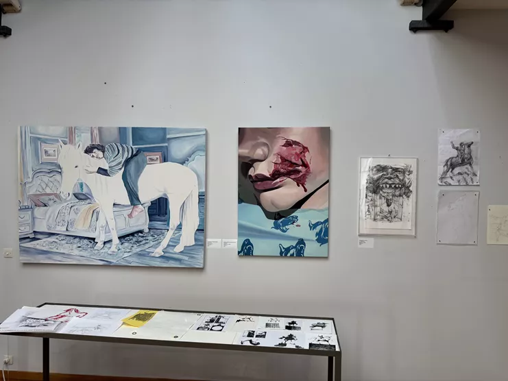 Στο επίκεντρο της έκθεσης βρίσκονται τα έργα φοιτητών του ΣΤ’ Εργαστηρίου Ζωγραφικής της Ανώτατης Σχολής Καλών Τεχνών, τα οποία συνομιλούν με τα έργα του κορυφαίου Έλληνα γλύπτη Γιάννη Παππά, από τη μόνιμη συλλογή του μουσείου. Ο Γιάννης Παππάς, μέσα από τα αμέτρητα σχέδια και τα επιβλητικά γλυπτά του, αναδεικνύει τη βαθιά και μυστηριώδη σχέση του ανθρώπου με το ζώο, εστιάζοντας ιδιαίτερα στην εικόνα του Έφιππου, μια εμβληματική φιγούρα που συνδέει τις δυο αυτές υπάρξεις σε έναν κοινό κόσμο, τόσο φυσικό όσο και συμβολικό. Οι φοιτητές της ΑΣΚΤ αναλαμβάνουν να συνεχίσουν και να επεκτείνουν αυτή τη θεματική, προσφέροντας νέες ερμηνείες και εικαστικά έργα που πραγματεύονται το σύμπλεγμα «ανθρώπου-ζώου».