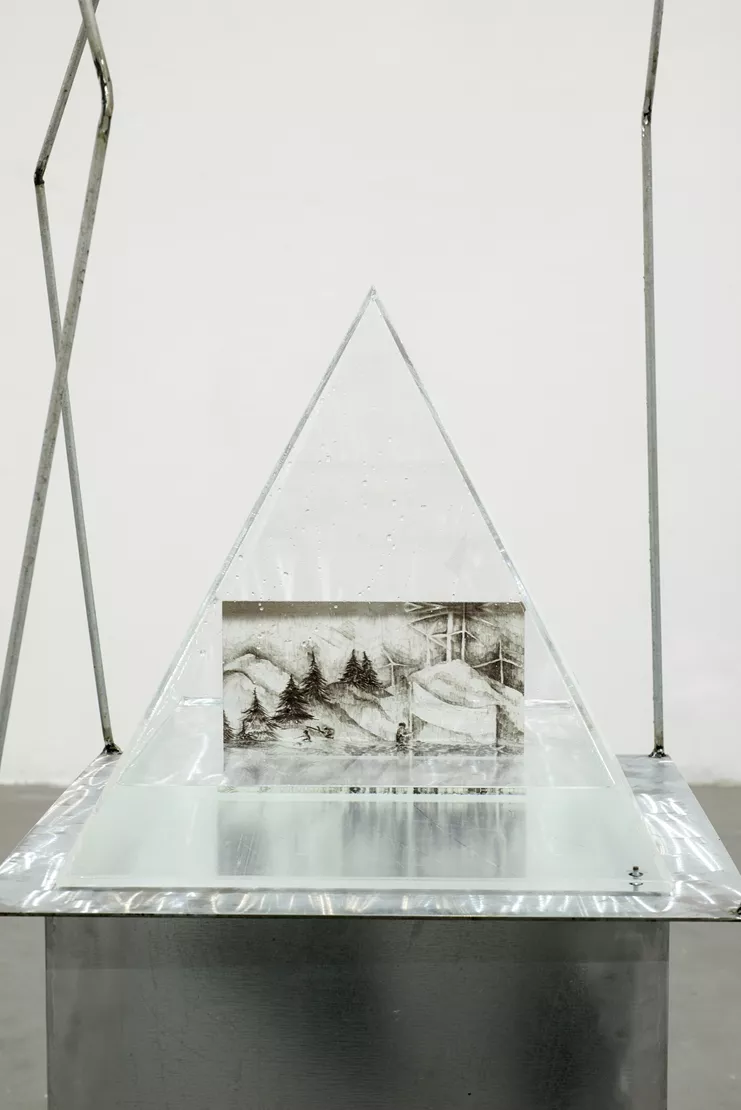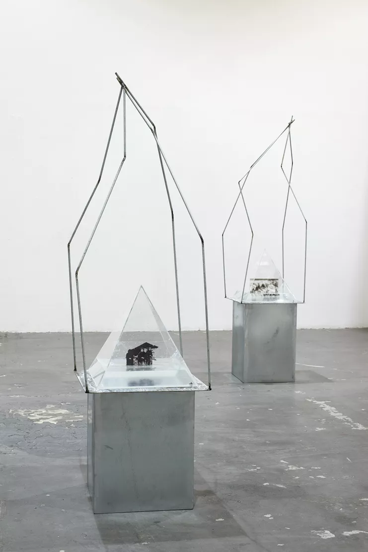Μια εγκατάσταση μεγάλων διαστάσεων αναμετράται με τα γεγονότα του ελληνικού εμφύλιου πολέμου. Γλυπτά, χαρακτικά, σχέδια, αντικείμενα, κείμενα και ήχος χρησιμοποιούνται για τη δημιουργία τριών μεταλλικών κατασκευών που θυμίζουν ορεινούς σχηματισμούς. Ο καθένας από αυτούς εμπεριέχει μια πυραμίδα πλεξιγκλάς με ένα τυπωμένο σχέδιο που απεικονίζει μια ορεινή σκηνή από την εποχή του πολέμου.