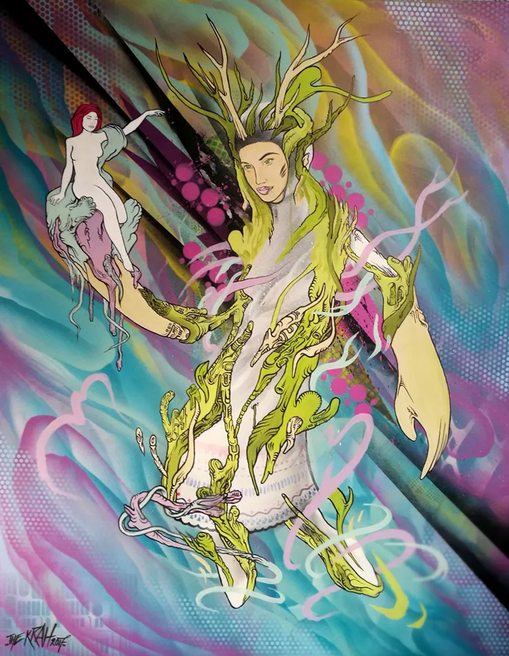 Ο street artist The Krah, επηρεασμένος από την art nouveau, τον pop-σουρεαλισμό και την urban art που εκπροσωπεί, θα παρουσιάσει ζωγραφικά έργα, γλυπτά και graffiti murals με θέμα την μυθολογία στη σύγχρονη εποχή.