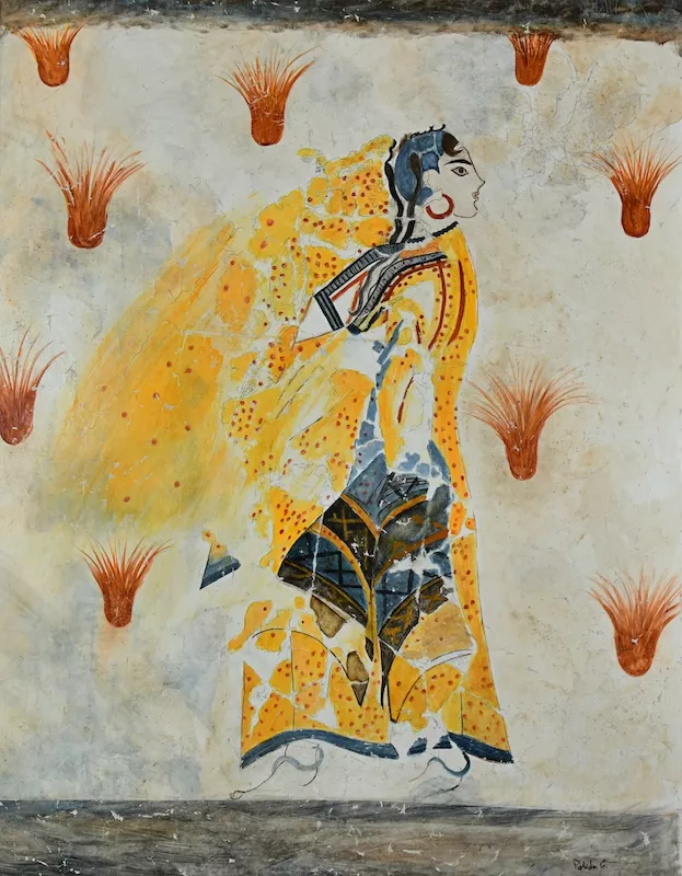 Στο Ίδρυμα Κακογιάννη στήνεται ένας αρχαίος γυναικείος χορός με κροκοσυλλέκτριες της Θήρας, την Αφροδίτη της Μήλου, τη Νίκη της Σαμοθράκης και τις Καρυάτιδες. Η Παλίντα Γεωργουλάκου εμπνέεται από το γυναικείο κάλλος των αρχαιοελληνικών αγαλμάτων και τοιχογραφιών και έτσι δημιουργεί τις ζωγραφικές συνθέσεις της. Αφετηρία για αυτή τη νέα σειρά έργων υπήρξε η αγωνία της καλλιτέχνιδας για τον ξενιτεμό των ελληνικών αριστουργημάτων της κλασσικής αρχαιότητας, στοιχείο που την ώθησε στη μελέτη των μνημείων και την απεικόνιση ενός σιωπηλού αρχαίου γυναικείου χορού που επιστρέφει σπίτι του.