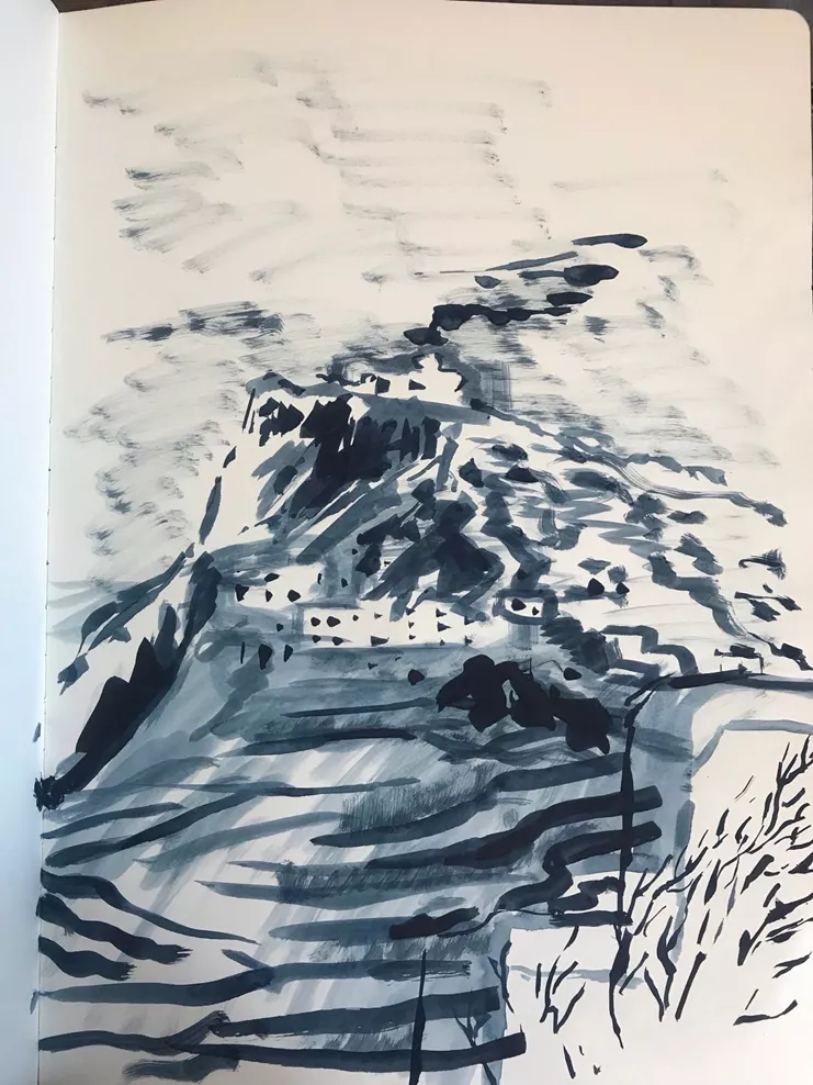 Ο Phil Goss παρουσιάζει ένα σύνολο έργων που ήταν απόρροια δύο εβδομαδιαίων διαμονών του στην Σίκινο, σε διάστημα ενάμιση χρόνου. Η έκθεση περιλαμβάνει σχέδια σε χαρτί, έργα ζωγραφικής και εκτυπώσεις σε χαρτί και καμβά. Μερικά από αυτά τα έφτιαξε ο Goss στο νησί ενώ άλλα ήταν αποτέλεσμα περαιτέρω επεξεργασίας του υλικού του στο ατελιέ του στο Λονδίνο. Με μία παιχνιδιάρικη πειραματική διάθεση στην επιλογή, την σύνθεση και την ενοποίηση των εικόνων, καταλήγει σε μία φρέσκια νέου τύπου αναπαράσταση. Όπως διηγείται ο ίδιος εκτός από την καθημερινή παρατήρηση, κοινώνησε ελεύθερα τις εικόνες του με αναφορές από την λογοτεχνία και τον κινηματογράφο, ταινίες όπως «η τρικυμία» του Derek Jarman ή «το λιβάδι που δακρύζει» του Θόδωρου Αγγελόπουλου.