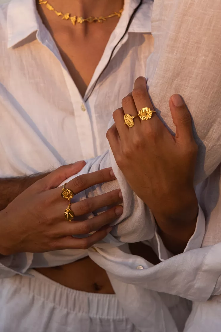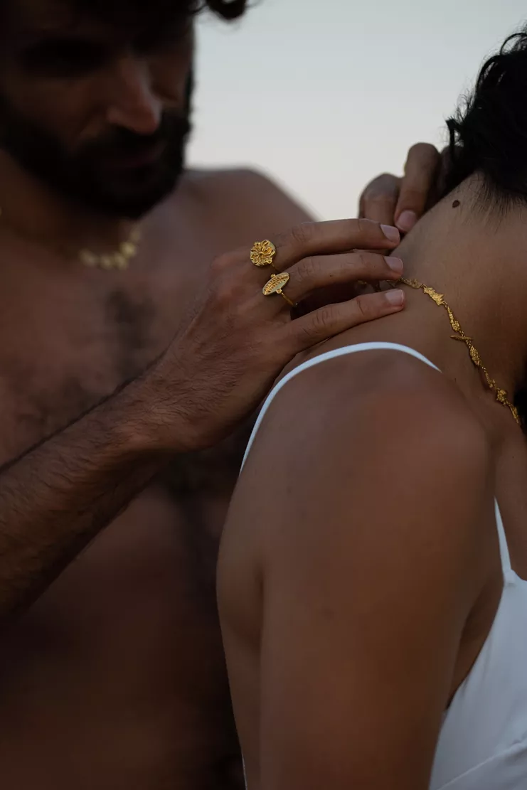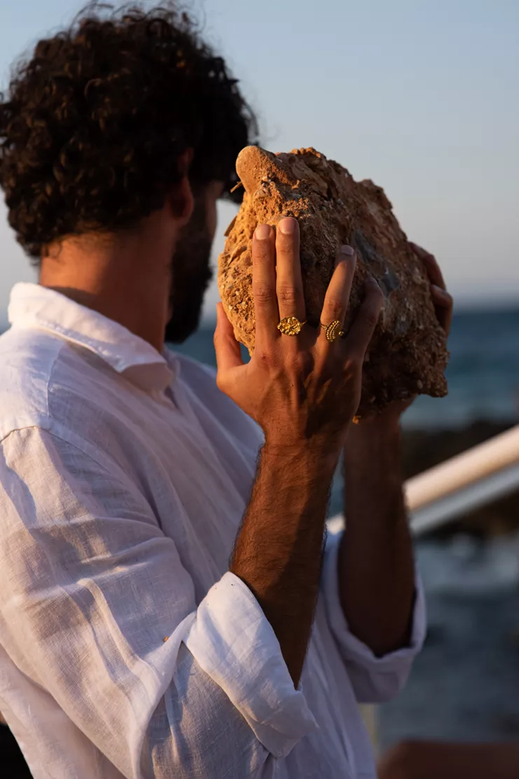 Η Eleni Marneri Gallery παρουσιάζει μία νέα συλλογή κοσμημάτων από το fine jewellery brand °'HRIAM που ιδρύθηκε στην Κοπεγχάγη το 2021 από την σχεδιάστρια Μαίρη Χαριτωνίδη. Η συλλογή Shales είναι εμπνευσμένη από τον σχιστόλιθο, που συναντούμε στην αρχιτεκτονική της περιοχής των Κυκλάδων και χαρακτηρίζεται από την τάση του να διασπάται σε λεπτά στρώματα. Η ιδιότητα αυτή ονομάζεται σχάση. Η ιδρύτρια και σχεδιάστρια του brand °'HRIAM, σε μία απόπειρα να μιμηθεί το φυσικό αυτό φαινόμενο δημιούργησε το περιδέραιου Cyclades, σε χρυσό 18 καρατίων. Το κολιέ που μοιάζει να είναι φτιαγμένο από μικρές πέτρινες πλάκες, στην πραγματικότητα αποτελείται από μια τρισδιαστατη μικρογραφία των νησιών των Κυκλάδων, σχηματίζοντας έναν τέλειο κύκλο γύρω από τον λαιμό του κομιστή. Το τεμάχιο συνοδεύεται από 4 δαχτυλίδια, σε μικρογλυπτική στο χέρι. Στο νεοκλασικό κτίριο όπου στεγάζεται η γκαλερί στην Πλάκα η Χαριτωνίδη θα μοιραστεί με τους επισκέπτες την έμπνευσή της πίσω από την συλλογή SHALES, A tribute to the Cycladic summer (ΣΧΙΣΤΟΛΙΘΟΙ, Ένα αφιέρωμα στο Κυκλαδίτικο καλοκαίρι) καθώς και τις τεχνικές που εφαρμόζει κατά τη δημιουργική διαδικασία. Συνδυάζοντας παραδοσιακές μεθόδους χρυσοχοΐας της Μεσογείου με την λιτή αρμονική αισθητική της Σκανδιναβίας, τα κοσμήματα °'HRIAM αφορμώνται από την βιώσιμη παραγωγή και στοχεύουν στο να αποτελέσουν ένα νέο μοντέλο συνειδητού καταναλωτισμού, εστιάζοντας στον τομέα των εκλεκτών πολυτελών κοσμημάτων και του ανεξάρτητου design.