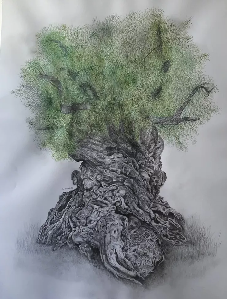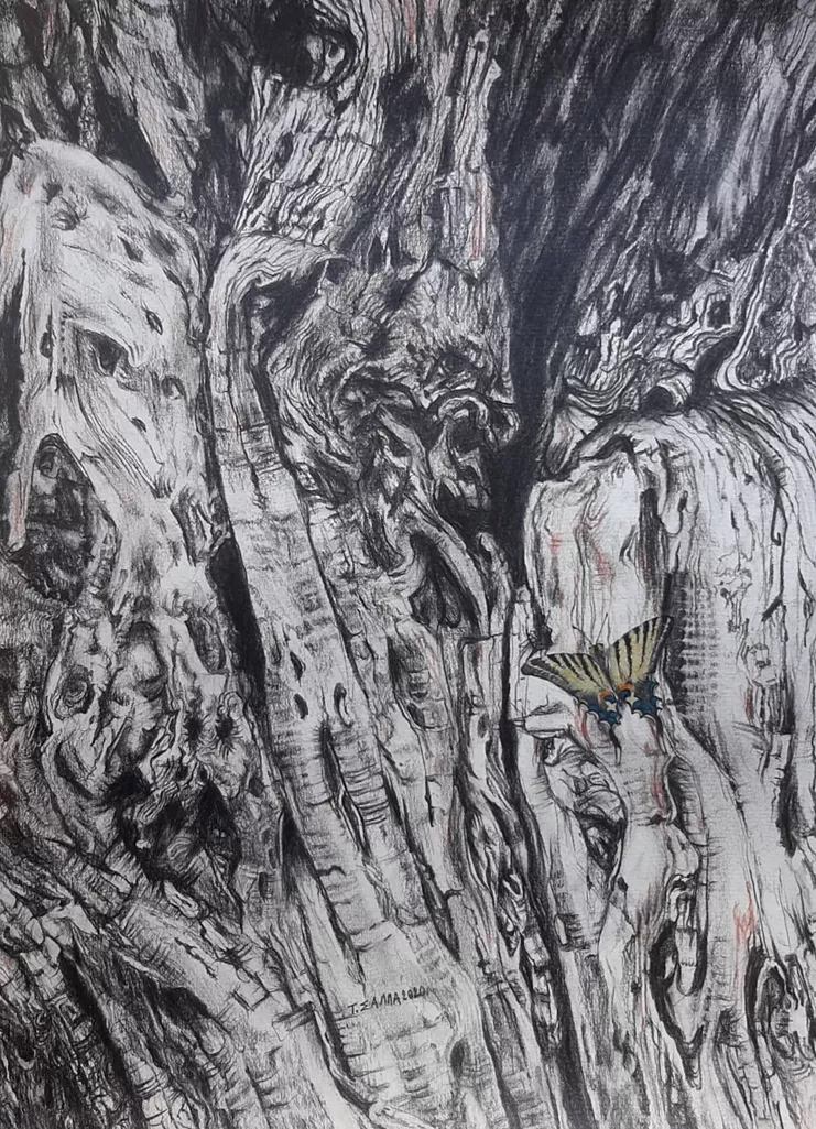 Συνεχίζοντας τις εικαστικές εξερευνήσεις με επίκεντρο τη φύση, η Τιτίκα Σάλλα δημιουργεί τη δεύτερη σειρά ζωγραφικών έργων όπου αναπαριστά τα δέντρα ως ανθρώπους ή αντίστροφα. Εικόνες ζωγραφισμένες με μολύβια, αβγοτέμπερα και ακουαρέλα προβάλλουν αγριολούλουδα, έντομα και σωρούς από ελιές, συνθέσεις που δημιουργούν καλλωπιστικά τοπία και μιλούν για έννοιες σχετικές με την αθανασία.
