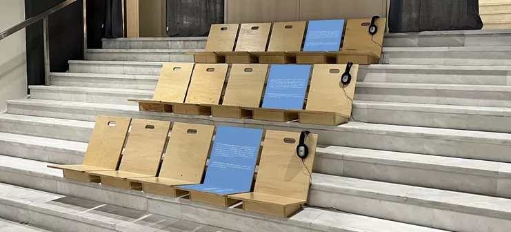 Στο πλαίσιο του προγράμματος Atlas of Mediterranean Liquidity και της ομώνυμης έκθεσης στο Ινστιτούτο Γκαίτε και με αφορμή την Παγκόσμια Ημέρα Νερού (22 Μαρτίου), η Ελένη Σπυριδάκη δημιουργεί μια ηχητική εγκατάσταση που μελετά τη σχέση νερού-σώματος και θέτει καίρια ερωτήματα για την κλιματική κρίση και την κοινωνική αλλαγή. Το έργο περιλαμβάνει προηχογραφημένους ήχους των κρυμμένων νερών της Αττικής, συνεντεύξεις από συνεργάτες και αποσπάσματα από κείμενα και έργα τέχνης από το πρόγραμμα «Το Γραφείο των Υδάτινων Κοινών» του Atopos.
