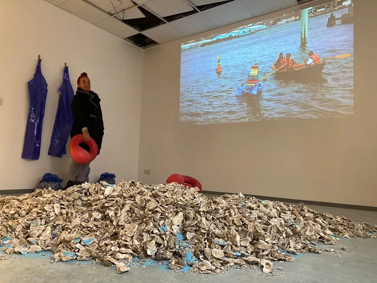 Μέσα από μια σειρά δημόσιων διεπιστημονικών και διακαλλιτεχνικών συναντήσεων που πραγματοποιήθηκαν τον περασμένο Μάιο και Ιούνιο, η καλλιτέχνιδα Τζένη Μαρκέτου σύστησε σε νέους, παιδιά, κατοίκους της Ελευσίνας και της ευρύτερης περιοχής, καινοτόμους τρόπους να συνδιαμορφώσουμε νέα δυνητικά κοινωνικο-οικολογικά μέλλοντα με το νερό ως ενεργό φορέα στη διαμόρφωση της κοινωνίας των πολιτών και του δημόσιου χώρου. Η έκθεση -αποτέλεσμα των συναντήσεων αυτών- περιλαμβάνει εγκαταστάσεις, video, φωτογραφίες και τεχνουργήματα φτιαγμένα από διαφορετικά οργανικά, μη ρυπογόνα υλικά, πλαστελίνη, ύφασμα, χαρτί αλλά και όσπρια, κοχύλια, στρείδια. Το «Μυστήριο 42 Futuring Waters» ολοκληρώνεται την Κυριακή 1 Οκτωβρίου με την παρουσίαση της ειδικής έντυπης έκδοσης «A Speculative Manifesto for-and from the Water Elefsina» (Ένα Στοχαστικό Μανιφέστο από-και για τα νερά της Ελευσίνας), αποτέλεσμα επιτόπιας διατομεακής έρευνας που εμπεριέχει κείμενα των καλεσμένων των συναντήσεων και ένα ολοκληρωμένο μανιφέστο, μια γραπτή διακήρυξη από και για τα δικαιώματα των νερών της Ελευσίνας εισάγοντας την έννοια της νομικής προσωπικότητας της φύσης.