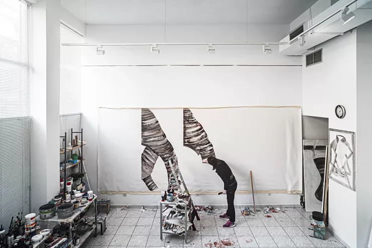Στιγμιότυπα από τις Συναντήσεις της Χλόης Ακριθάκη με εικαστικούς καλλιτέχνες στα εργαστήριά τους αλλά και εκτός. Το 1992, η Χλόη Ακριθάκη φωτογράφησε τον πατέρα της στο στούντιο του. Αυτή ήταν η πρώτη της φωτογράφηση καλλιτέχνη, την ώρα που δημιουργεί, νιώθοντας ελεύθερος, ξεχνώντας την ύπαρξη της κάμερας. Αυτή είναι όμως που «όρισε» και το είδος, τον τρόπο και τη σχέση ανάμεσα σε αυτήν και τους άλλους καλλιτέχνες που θα φωτογράφιζε χρόνια αργότερα στην Αθήνα. Οι Συναντήσεις της Χλόης Ακριθάκη είναι ένα εν εξελίξει έργο, που έχει να κάνει πρωτίστως με την αμοιβαία σχέση εμπιστοσύνης, αποδοχής και ελευθερίας μεταξύ δημιουργών. Είναι η απόδοση, φωτογραφικά, του μοιράσματος, της ενέργειας και του παλμού μιας συνάντησης, όπως αποτυπώνεται σε μια επιλογή δικών της έργων, τόσο διαφορετικών όσο οι καλλιτέχνες και τόσο ποικίλων όσο τα έργα τους.