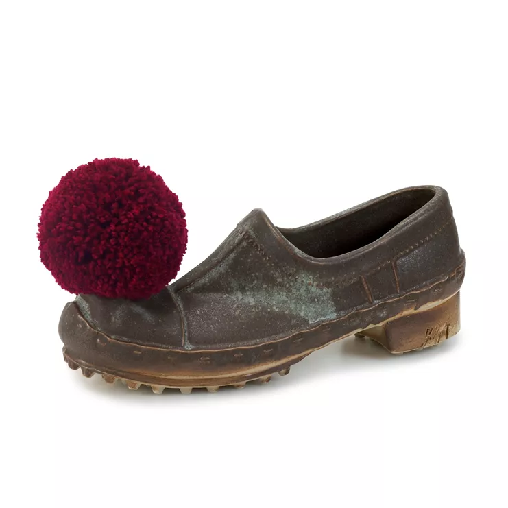 H ευφάνταστη κεραμίστρια Χριστίνα Μόραλη εκθέτει πτυχές από σημαντικές περιόδους της δουλειάς της. ‘Πρωταγωνιστής’ της έκθεσης είναι το τσαρούχι που έχει αναχθεί σε σήμα κατατεθέν της πρακτικής της εδώ και πολλά χρόνια. Η Χριστίνα Μόραλη έχει διαμορφώσει ένα σκηνικό από απαστράπτοντα τσαρούχια με φούντες πλούσιες σε φωτεινό κόκκινο αλλά και στο παραδοσιακό μαύρο χρώμα, τα οποία παρουσιάζει μαζί με banners και κεραμικές κατασκευές.