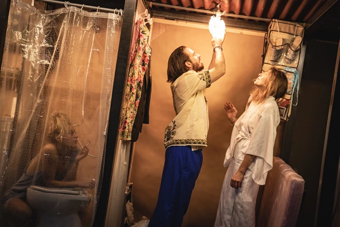 Πράγματι. Πρόκειται για μια κωμωδία που ανοίγει την "κλειδαρότρυπα” του θεάτρου. Σκεφτήκαμε μήπως είναι πολύ εσωτερική, αυτό που λες inside joke, όμως παρατηρήσαμε ότι οι θεατές βρίσκουν ενδιαφέρον να δουν πώς λειτουργεί το θέατρο εκ των έσω, το να τους αφήσεις να δουν μέσα από την κλειδαρότρυπα του επαγγέλματος βοηθάς την αφήγηση και έχει ενδιαφέρον να ξέρουν πως λειτουργούν τα πράγματα στους επαγγελματίες του θεατρικού χώρου.