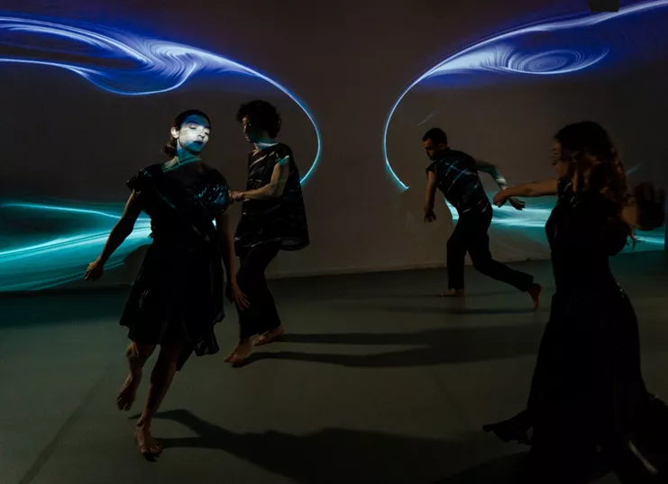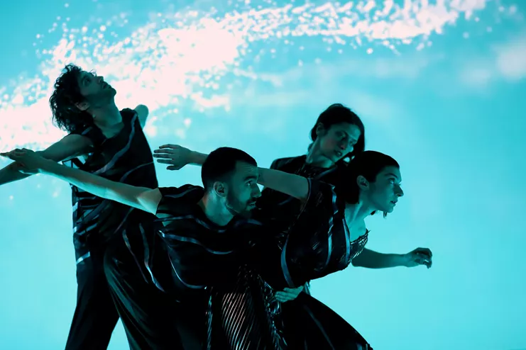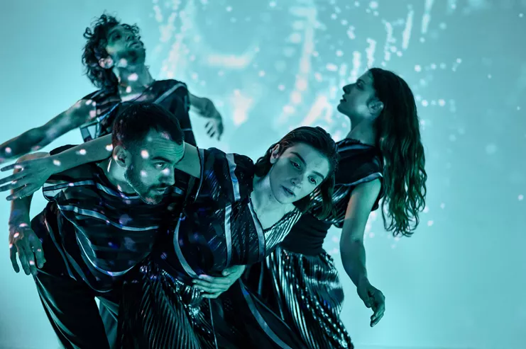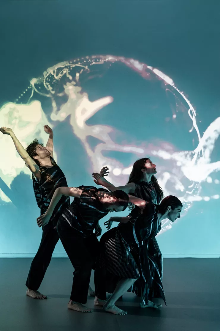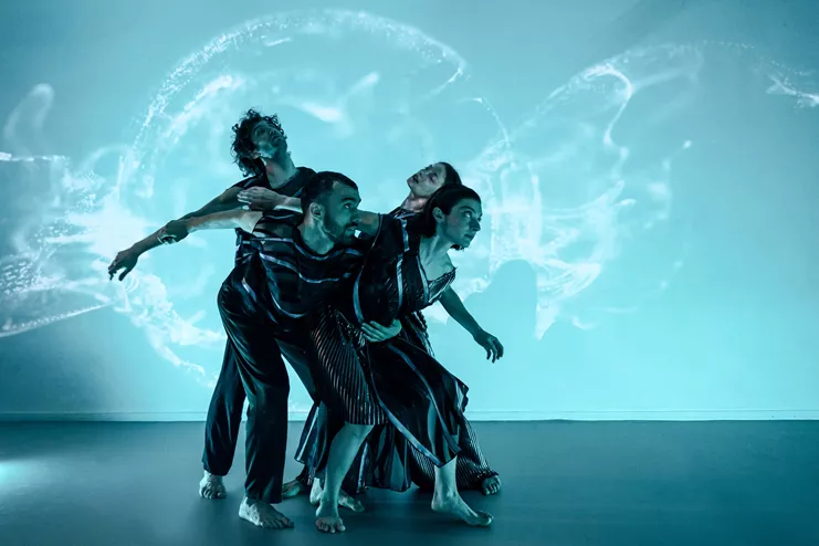 Τα στοιχεία της φύσης συνδιαλέγονται ως παλλόμενα σώματα επί σκηνής, συνθέτοντας ένα χορό θέσεων και αντιθέσεων, μέσω μιας ενορχηστρωμένης αρχέγονης τελετουργίας. Τα σώματα δονούνται είτε σαν τα μόρια της ύλης σε μεγέθυνση είτε κινούνται σαν ρευστά υπό την επίδραση των φυσικών νόμων και φαινομένων. Ένα επί σκηνής ξεδίπλωμα της φύσης, της δημιουργίας και της καταστροφής της, μας κάνει να αναρωτηθούμε: Ποια είναι τελικά η σχέση μας με τη φύση; Αφιερώνουμε το χρόνο μας σε αυτή; O χρόνος διαστέλλεται, ενώ 4 σώματα δονούνται πάνω στη γη που σείεται. Πλημμυρίζουν τη σκηνή πλέκοντας υδάτινες δίνες και αέρινους στροβίλους. Ατενίζουμε τη σταδιακή εξάπλωση μιας φλόγας μέχρι αυτή να μεταμορφωθεί σε μια πύρινη μάχη. Το κουαρτέτο μεταβαίνει στον ανεξερεύνητο Πλατωνικό αιθέρα. Το άρρητο αυτό στοιχείο, συνδετικός κρίκος των υπολοίπων, καταλαμβάνει τον ενδιάμεσο χώρο, προσκαλώντας μας σ’ ένα συμπαντικό κοσμικό χορό.