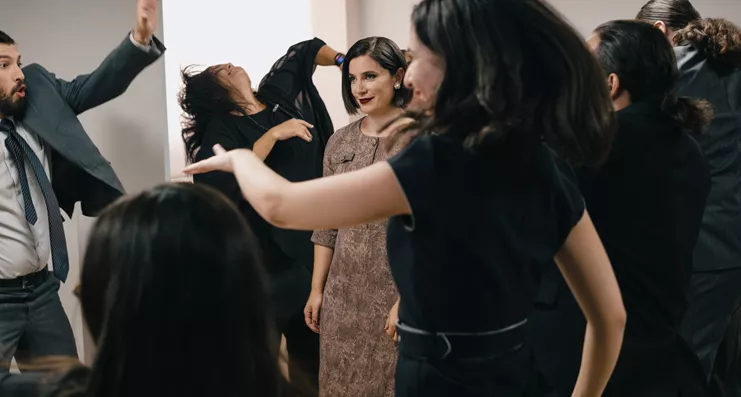 Αντλώντας κυρίως από την ομώνυμη τραγωδία του Αισχύλου, αλλά και από ποιήματα του Γιάννη Ρίτσου και μαρτυρίες γυναικών, προσφύγων και στρατιωτών, η Ρ. Σαουίς δημιούργησε ένα σύγχρονο πολιτικό θρίλερ με τους όρους του cinematic theatre. Η παράσταση έκανε πρεμιέρα στο ιστορικό θέατρο La MaMa της Νέας Υόρκης, αποσπώντας εξαιρετικές κριτικές και κάνει μια στάση στην Αθήνα πριν συνεχίσει την ευρωπαϊκή περιοδεία της. Μέσα από μια σύγχρονη δραματουργική προσέγγιση, το έργο διερευνά τη φύση του πολέμου ως εργαλείου εξουσίας, μια ατέρμονη μηχανή που παράγει θύματα. Η Κλυταιμνήστρα γίνεται η φωνή αυτών που υφίστανται τη βία της ιστορίας: των προσφύγων, των γυναικών, των θυμάτων της καταπίεσης και της αδιαφορίας.
