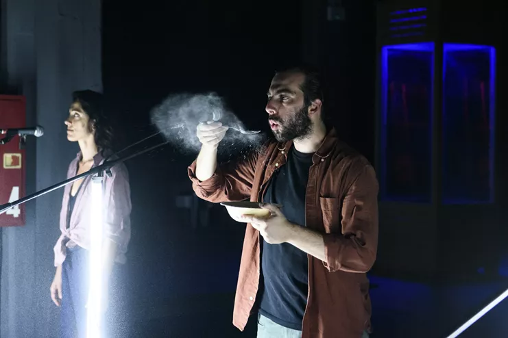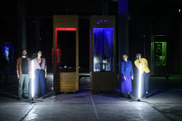Ερμηνεύουν: Γ. Βαρβαρέσος, Αλ. Μπεζίκη, Μ. Παντελοπούλου, Κ. Παπαδοπούλου. Μουσικός επί σκηνής-μουσ.: Νικήτας Κίσσονας. Εικαστ. εγκαταστ.-σκην.: Μ. Καραθάνου. Φωτ.: Ν. Βλασόπουλος.