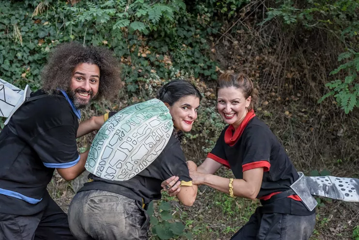 Πέντε μύθοι του Αισώπου, «Το τζιτζίκι και το μυρμήγκι», «Oι δύο τράγοι», «Ο βοριάς και ο ήλιος», «Ο κάβουρας και το φίδι» και «Ο λαγός και η χελώνα», ενώνονται σε μια επετειακή διαδραστική παράσταση και με όχημα τη ζωντανή μουσική από 13 διαφορετικά μουσικά όργανα-τύμπανα, κιθάρα, άρπα, βροντή, καζού, magic drum, καλίμπα, ξύστρα, μουσική γαβάθα, καστανιέτες, κρόταλα, ζήλιες, καχόν-, τραγούδια, χιούμορ και απρόβλεπτες μεταμορφώσεις. Μάχες, έριδες, συγκρούσεις, ανταγωνισμοί και αψιμαχίες συνθέτουν ένα εκρηκτικό σκηνικό σε μία παράσταση όπου τα παιδιά αναλαμβάνουν ενεργό ρόλο στην εξέλιξη των ιστοριών, δίνοντας ζωντάνια και ρυθμό, ενώ μέσα από τα μαθήματα και παθήματα των ηρώων του Αισώπου μαθαίνουν για τις μεγαλύτερες αξίες και της ζωής.