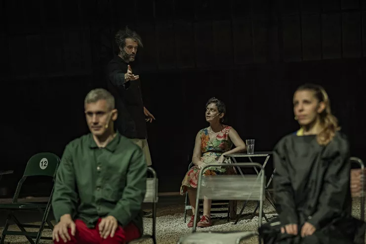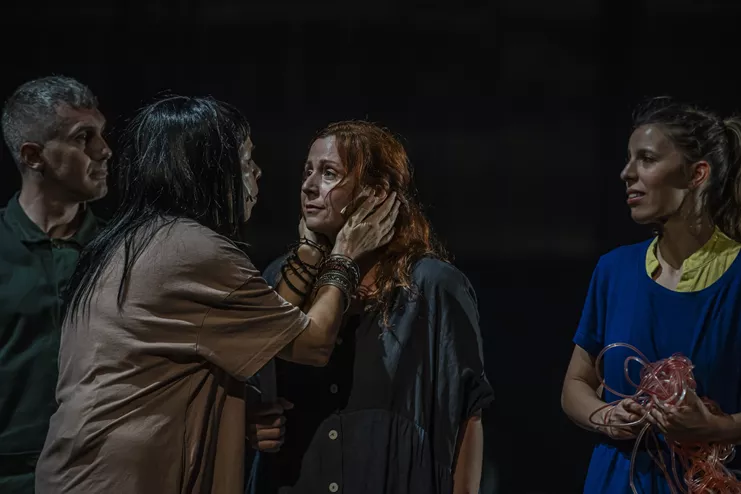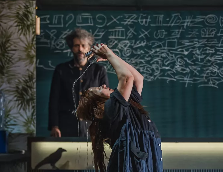 Μπορούμε να αντιστρέψουμε για λίγο την οπτική του κόσμου; Να δούμε πέρα από τον κόσμο της ύλης; Έναν ιδιαίτερο τόπο στα όρια μεταξύ μύθου και πραγματικότητας, κατοικημένο από ονειροφαντασίες και φαντάσματα μας καλεί να ανακαλύψουμε η πολυφωνική σύνθεση που δημιουργεί για το Φεστιβάλ η Αργυρώ Χιώτη, με μια μεικτή ομάδα ερμηνευτών, αποτελούμενη από ηθοποιούς, χορευτές και τραγουδιστές. Μεταφυσικές ιστορίες και θρύλοι εμπνέουν μια αφήγηση που διεκδικεί την επιστροφή στον μύθο. Στη σκηνή δημιουργείται ένας υπαρξιακός τόπος ανα-ψυχής. Ένας τόπος όπου συγκεντρώνονται οι ψυχές να ξεδιψάσουν, ανάμεσα σε οπτασίες και πνεύματα της φύσης, διερωτώμενες για τη σχέση ανάμεσα στο ατομικό και το συλλογικό.