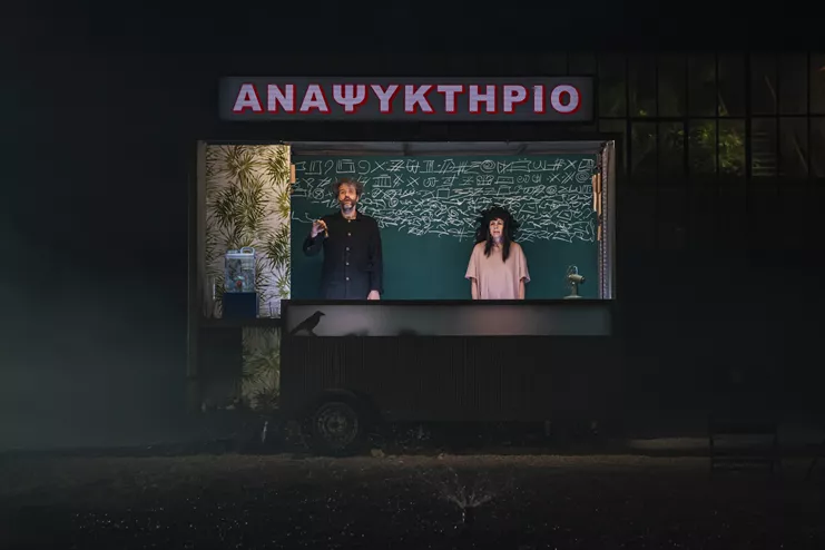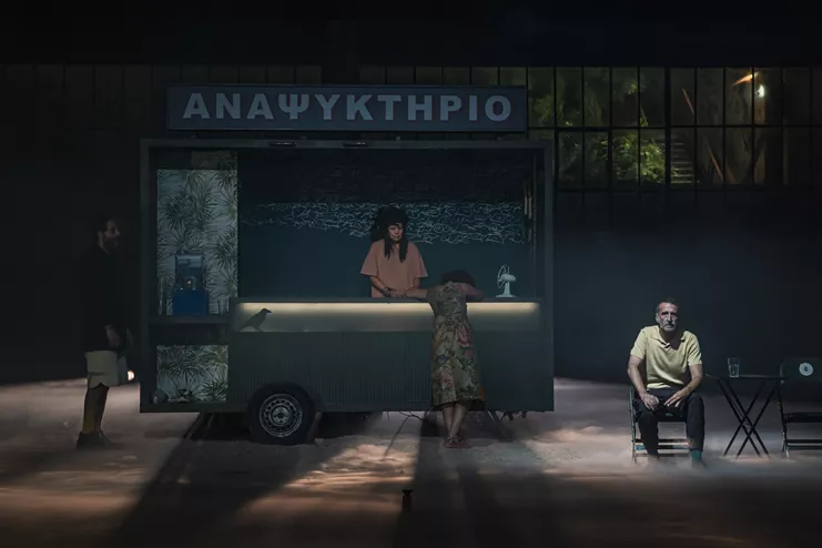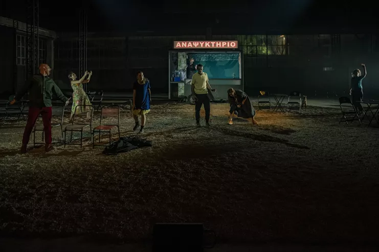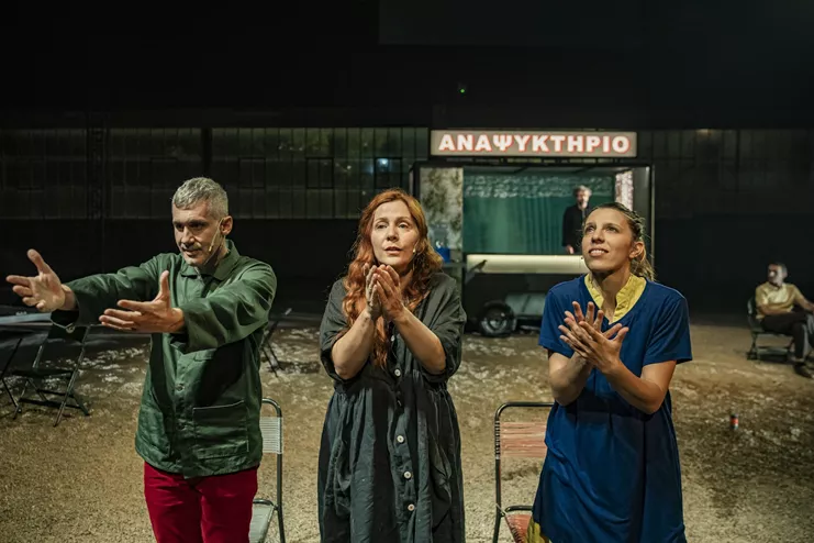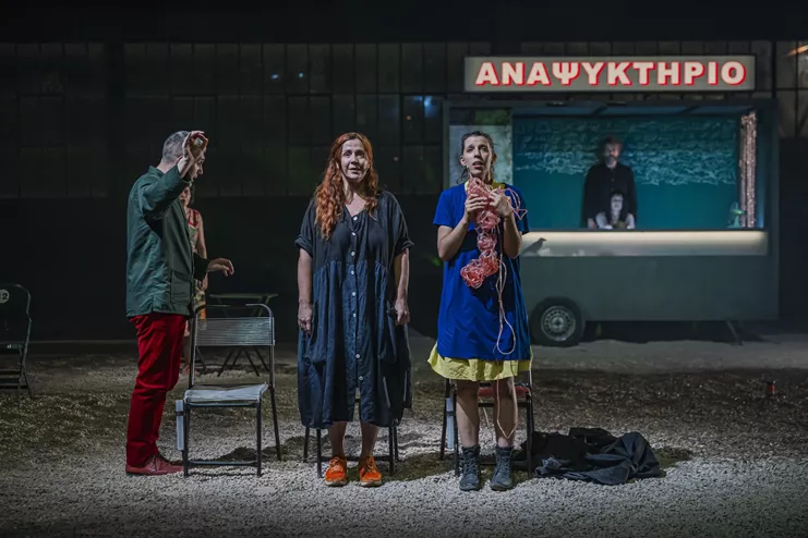 Ερμηνεύουν: Ν. Ζιάζιαρης, Αμ. Κοσμά, Γ. Κριθάρας, Ρ. Λυτού, Εύη Σαουλίδου, Δ. Σκώτης, Τζ. Χρυσκιώτη. Σκην.: Εύα Μανιδάκη. Κοστ.: Άγγ. Μέντης. Μουσ.: Γ.-Β. Αγγελόπουλος. Φωτ.: Ελ. Αλεξανδροπούλου.